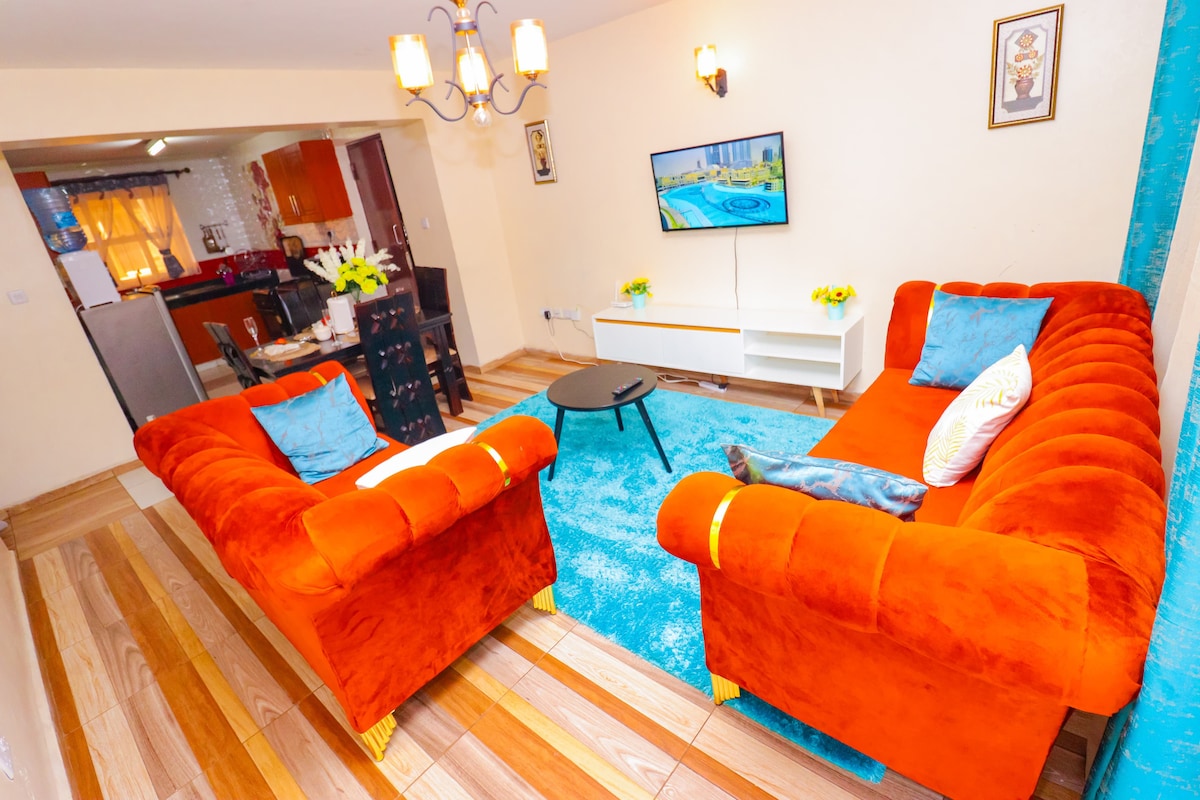 Vítejte v „The Green Nook. Náš moderní apartmán se 4 ložnicemi v Garden City Residences v Nairobi nabízí prostorný a pohodlný pobyt se stylovými interiéry. Otevřený obývací prostor, plně vybavená kuchyň a tři dobře zařízené ložnice. Vychutnej si vybavení, jako je vysokorychlostní Wi-Fi, bezpečné parkování, bazén a posilovna. Nacházíme se v nákupním centru Garden City Mall, v blízkosti obchodů, restaurací a klíčových atrakcí Nairobi, což z něj činí ideální volbu pro služební cesty i volný čas.