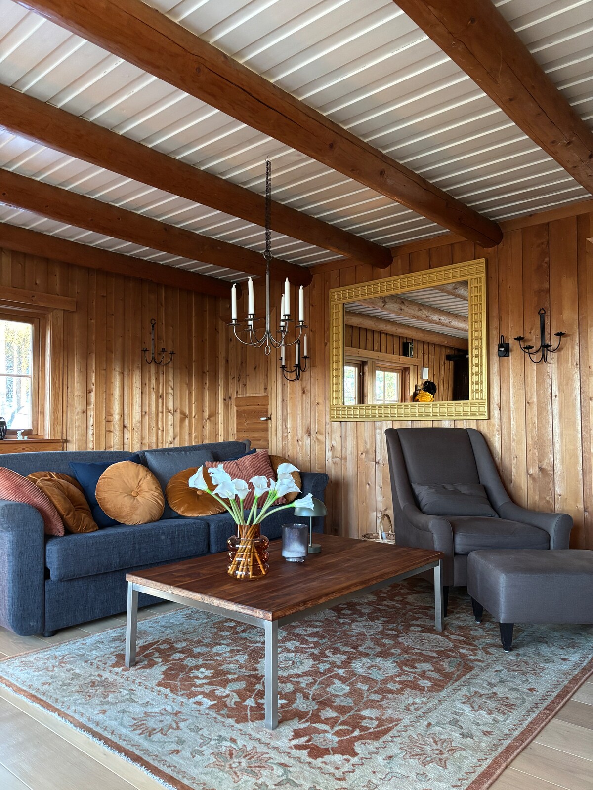 Nylig oppført hytte ved koselige Mylla, Nordmarka
