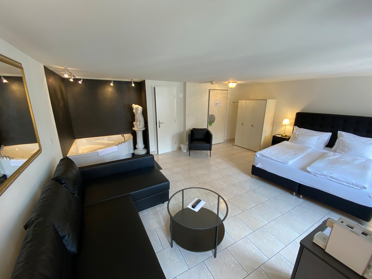 Vybavení pokoje: Manželská postel Koupelna se sprchou nebo vanou a toaletou Vanity zrcadlo a fén Minibar Ventilátor (bez klimatizace) Trezor, TV/rádio Kávovar Delizio Po příjezdu a odjezdu může host jet autem před hotelem (také taxíkem). Veřejná parkoviště jsou nedaleko. Parkování s obsluhou je k dispozici za poplatek 32,00 CHF. VÝTAH z 1. patra