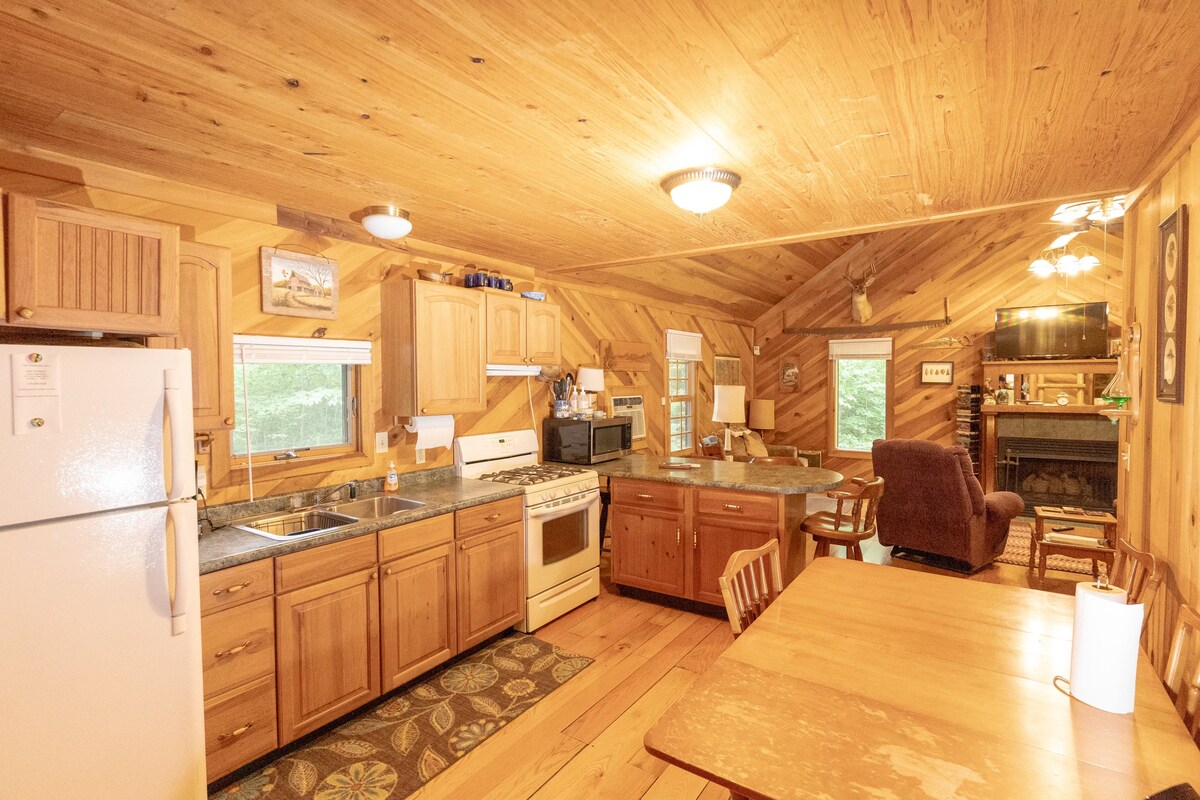 Toto je pěkná prostorná chata v lese přímo u vody. Má krytou přední verandou po celé délce chaty. K dispozici je jedna ložnice, podkrovní ložnice, obývací pokoj, kuchyň, jídelna a koupelna se sprchou. Interiér je celý dokončen v krásném původním tvrdém dřevě. Je obklopen velkými duby a přímo před ním je rybník. Nachází se přibližně 300 stop od veřejné silnice, což zajišťuje vynikající soukromí.