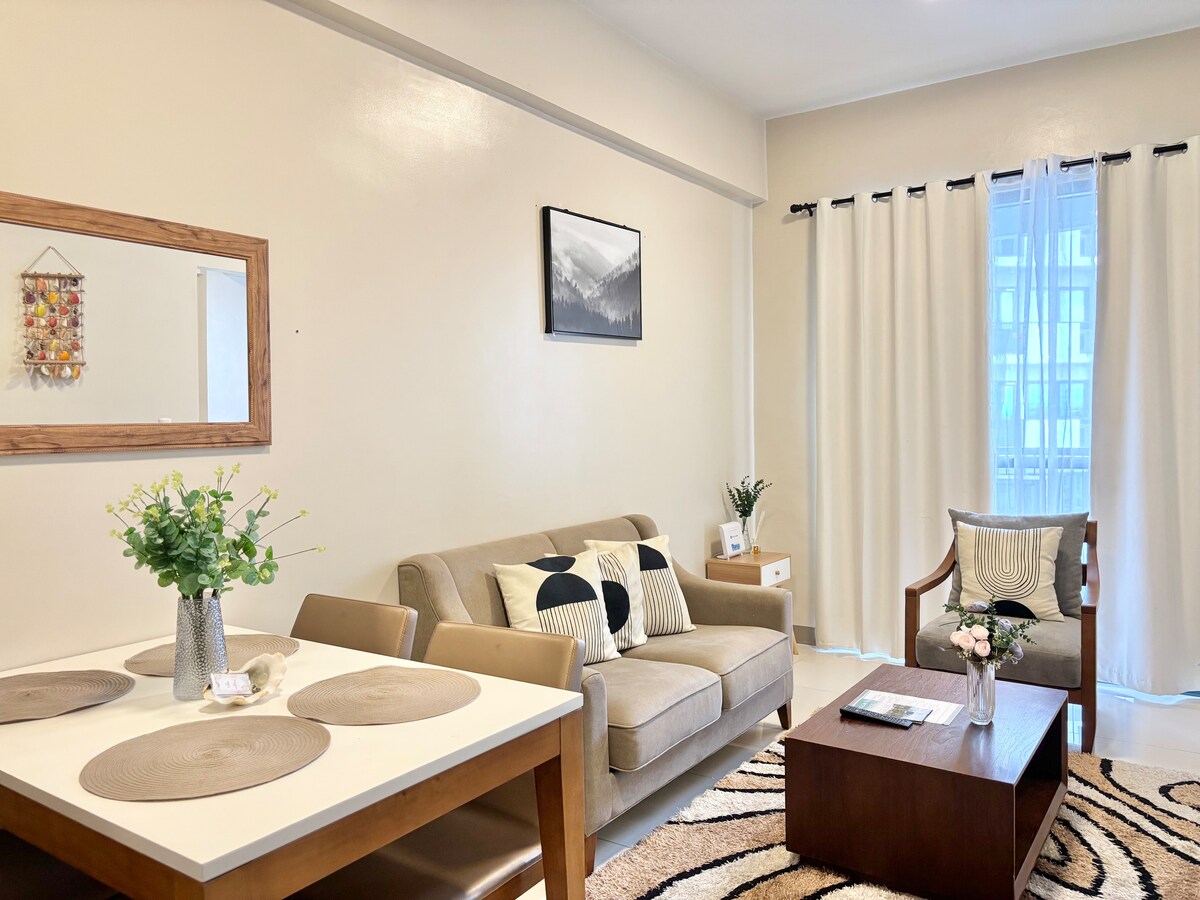Monochromatic tones and plush textures welcome you into this beautifully designed 37 sqm studio in Tambuli Seaside Living. Enjoy a queen-size bed, a cozy sofa bed, fast Wi-Fi, and a fully equipped kitchen, plus a private balcony overlooking the Hilutungan Channel. Free access to the condo’s exclusive pools completes this relaxed, resort-style escape just minutes from Mactan Airport.