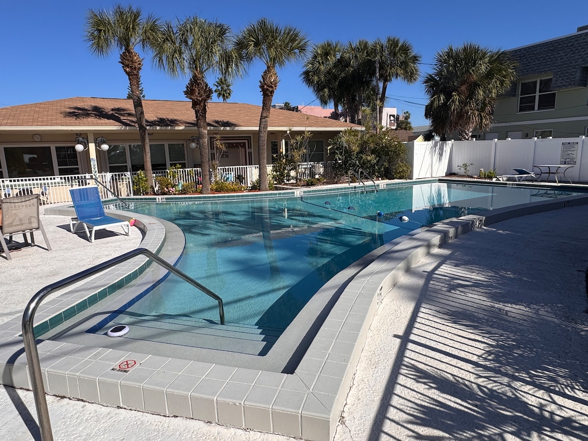 Update: As of 12/31/25, Cozy Cottage is bookable after a full renovation (again)! The heated/cooled pool is open. Please be patient as we continue to improve the complex with exterior paint and landscaping. Updated pictures have been posted! Welcome to Gulf Gardens' Cozy Cottage! A 1-min walk across Gulf Blvd to the beach! Enjoy our large pool or relax under the sun poolside. BBQ grills are available under a shaded cabana with seating/tables. John's Pass – 1 mi