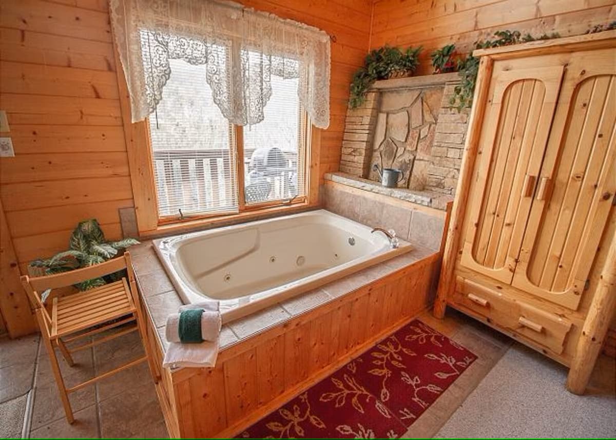 Soukromá chata s novým nábytkem. Tato velmi vyhledávaná romantická chata s jednou ložnicí se nachází daleko od ostatních chat. Do této jedinečné chaty bylo přidáno mnoho nových osobních detailů. Tato chata byla hitem pro líbánky a výročí. Nachází se v uzavřené komunitě Bear Creek Crossing Resort, jen pár minut od atrakcí v centru Pigeon Forge a nedaleko Dollywoodu. K dispozici jsou služby concierge, které vám poskytnou speciální detaily k vašemu příjezdu.
