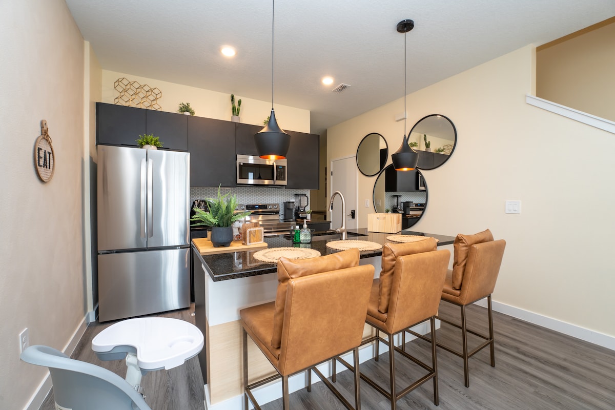KOUZELNÝ VÝHLED NA VESNICI - 8 HOSTŮ - 4 APARTMÁ - 4,5 KOUPELNY - GRIL - 8 MINUT DISNEY Nový kondominium s moderními architektonickými domy, obývacími pokoji s dvojitou výškou, moderním nábytkem, parkovacími místy před jednotkou. Dobře umístěné v blízkosti US-192 a volnočasových aktivit, jako jsou kina, restaurace, vodní parky a nákupní centra, 6 minut od parků Disney, 3 minuty od lékáren a Walmartu a 25 minut od studií Universal. Bav se s celou rodinou na tomto stylovém místě. (7589 Brk dr)