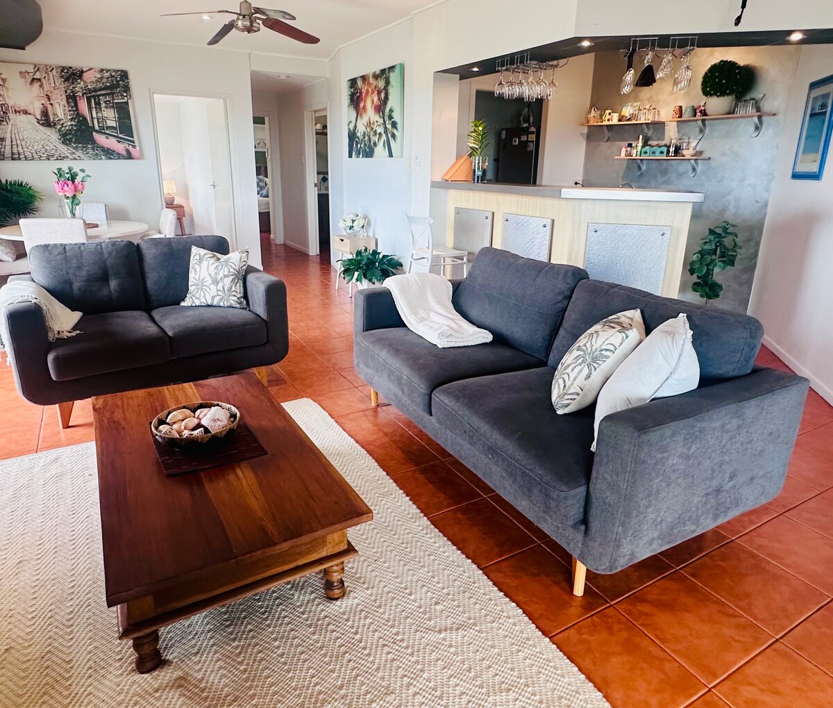 Plně samostatný apartmán se 2 ložnicemi, který zabírá celou přední polovinu jednopatrového domu v Annandale v Townsville. Pouhých 5 minut od univerzity Jamese Cooka a univerzitní nemocnice Townsville. Nově zrekonstruované s vysokými stropy, moderním nábytkem, soukromým vchodem, obývacím pokojem, kuchyňkou a terasou pro tvé exkluzivní použití. Klimatizace a prádelna jsou v ceně. Hosté mají také přístup ke sdílenému bazénu, funkční posilovně, venkovnímu grilu a rychlé Wi-Fi pro pohodlný a relaxační pobyt.