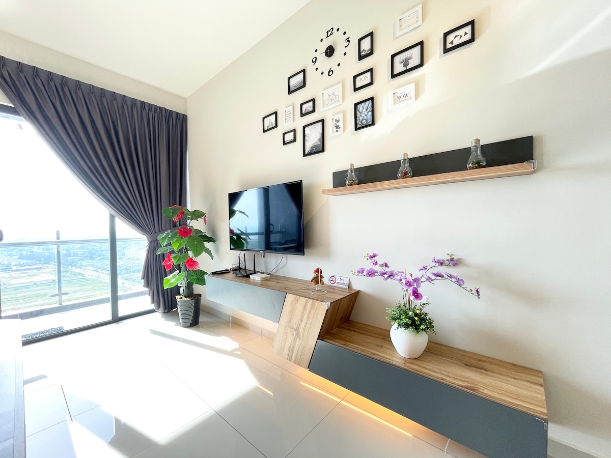 Strategicky umístěný byt v blízkosti atrakcí Melaky (Jonker Walk, Kg. Morten, Dataran 1 Klebang, Bandar Hilir a nákupní centra). Tato rodinná jednotka nabízí kompletní vybavení, dávkovač teplé a studené vody Coway, postel velikosti king size bez štěnic udržovaná společností Coway, Netflix Premium 4K přístup na 50" UHD Smart TV. V neposlední řadě je jednotka dobře udržovaná a čistota, pohodlí a bezpečnost jsou na prvním místě