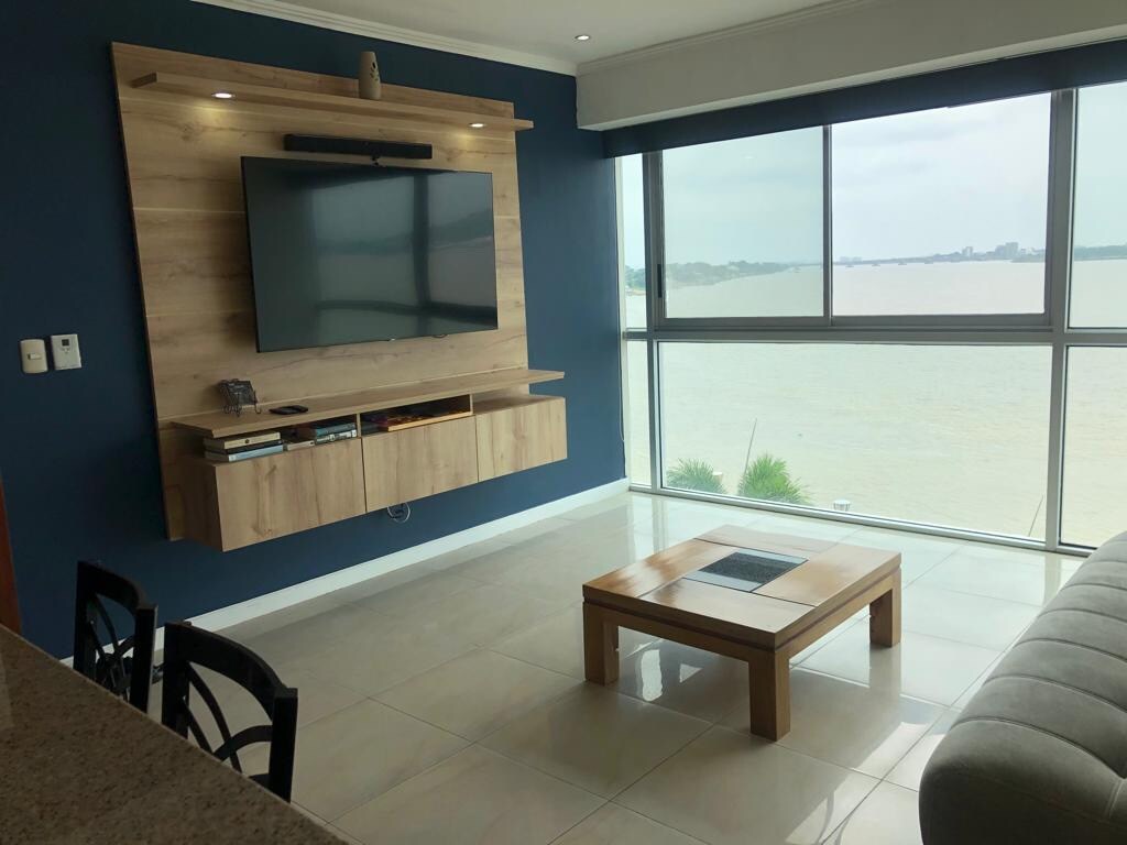 Útulné apartmá s panoramatickým výhledem na řeku Guayas. It is located in the best residential and commercial area of the city of Guayaquil. 5 minut od letiště a 3 minuty od pozemního terminálu, můžete dojít do restaurací, barů a supermarketů, sektor má bezpečnostní kamery, soukromou bezpečnost, národní policii a nonstop recepci v budově a jejím okolí. Budova má velký společenský prostor s bazénem, vířivkou, saunou a posilovnou. NÁVŠTĚVNÍCI NEJSOU POVOLENI