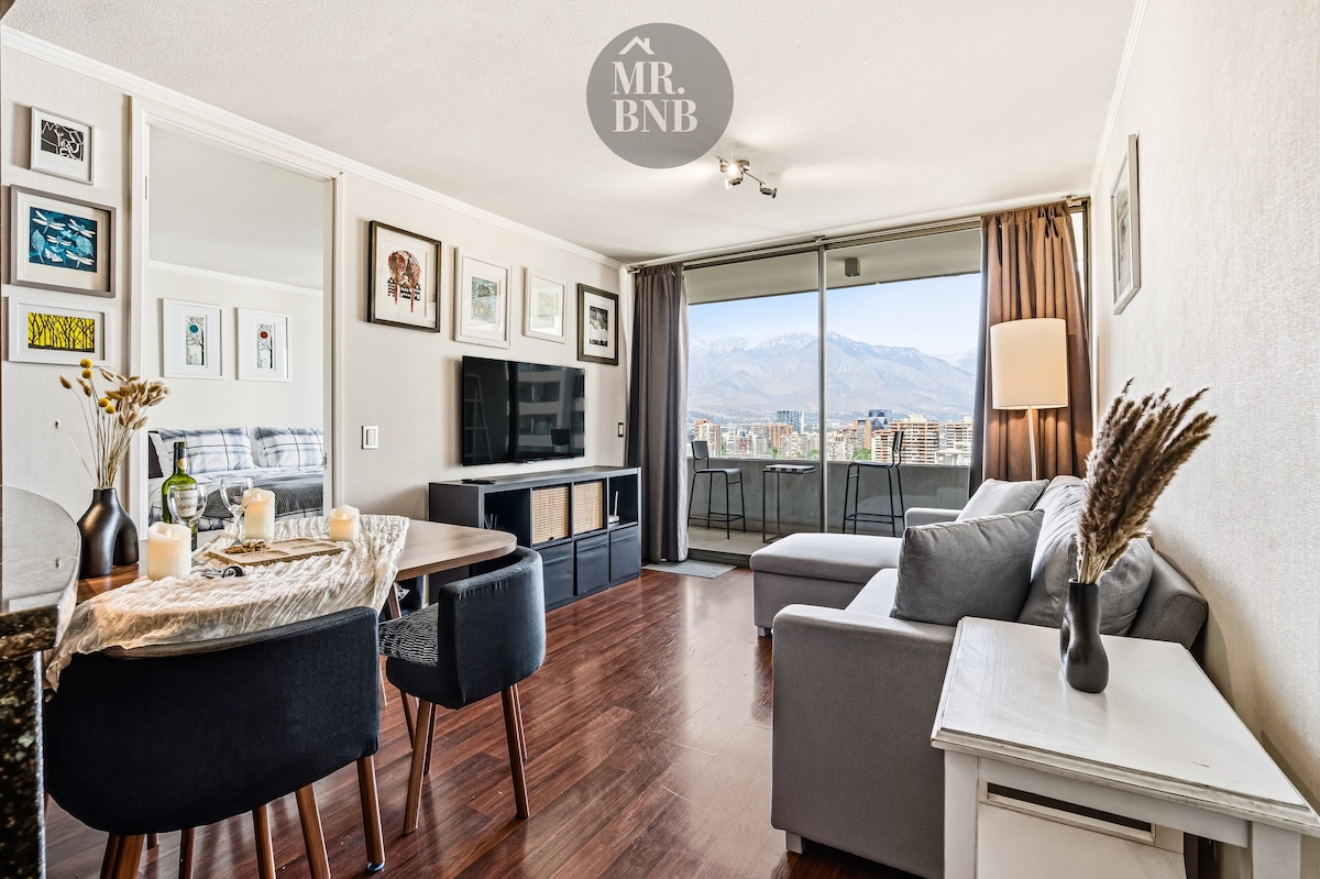 🌿 Nordic Stay New Kennedy | Výhled na Andy + vyhřívaný bazén Moderní a světlý severský byt v srdci Las Condes. Užij si terasu s panoramatickým výhledem na pohoří Cordillera, minimalistický dekor, vybavenou kuchyň a luxusní společné prostory s vyhřívaným bazénem a posilovnou. Pár kroků od Parque Arauco, Nueva Kennedy a stanice metra Manquehue, ideální pro páry, turisty a obchodní cestující hledající pohodlí, design a prvotřídní lokalitu.