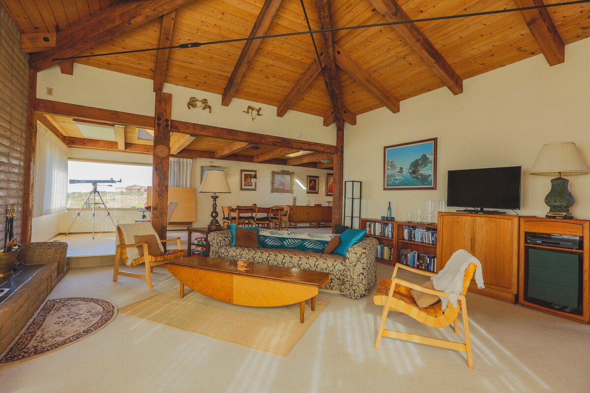 Posazený na útesu, náš domov má veškeré pohodlí, včetně přístupu na uzavřenou soukromou pláž a dramatický výhled na Tichý oceán. Pohodlné až pro šest osob s ložnicemi a koupelnami na obou koncích domu pro soukromí. Rychlý, neomezený internet. Pro hosty je k dispozici nabíječka pro elektromobily úrovně 2 Enphase HCS50 se zástrčkou J1772 (aka J plug nebo konektor typu 1).