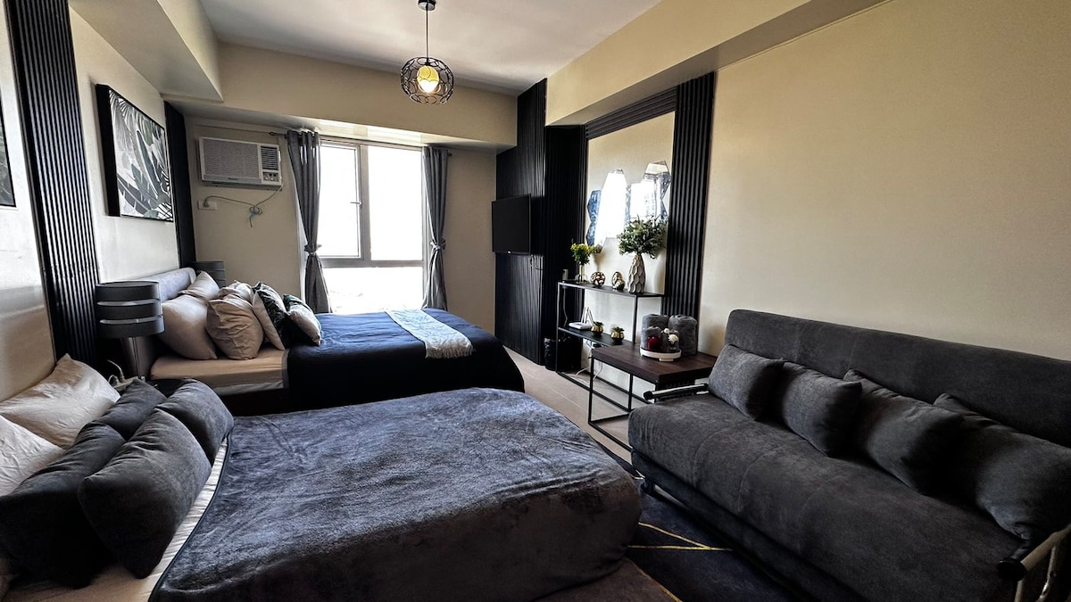 Vítej ve svém domově daleko od domova v srdci Cebu! Toto plně zařízené studio se nachází v Cebu IT Parku – nejlepší městské destinaci pro životní styl v Cebu. Užij si přístup k bazénům, posilovně, dětskému hřišti, rychlému internetu/Wi-Fi, Smart TV s Netflixem, pohodlné posteli, čerstvému ložnímu prádlu a ručníkům a plně vybavené kuchyni a jídelně. Určitě se ti bude líbit, že jsi blízko Sugbo Mercado, Ayala Mall, prádelny, večerky, bankomatů, placených parkovišť a dalších míst.
