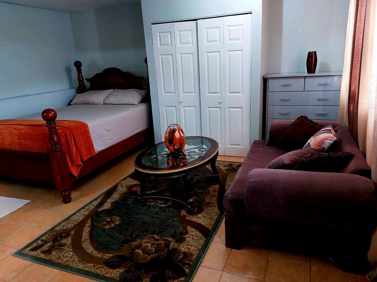 Enjoy peace and tranquility at this centrally located studio in the cool hills of mandeville. Full kitchen is included. Queen size bed with air conditioner and ceiling fan. Gym on-site to get your daily dose of work out, pool is available for a dip on those sunny days. Wifi and cable TV available along with washer and dryer.