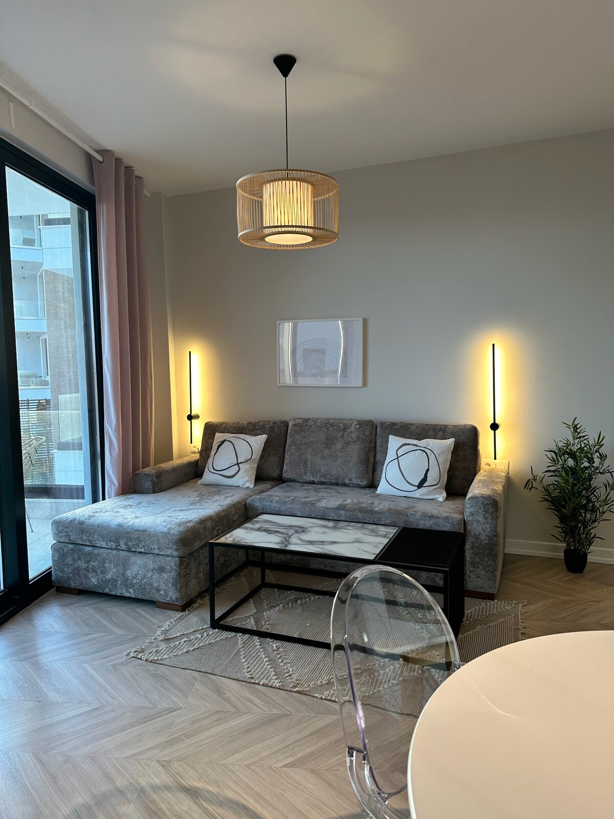 Zažij svět zázraků a ponoř se do vysněného pobřežního pobytu, který nabízí rána a západy slunce, se soukromou pláží vzdálenou 1 minutu v přízemí s výhledem na Jónské moře. Náš ohromující byt v Bougainville Bay nabízí prostorné a světlé interiéry zdobené vysokými stropy s úchvatným výhledem na moře. Byt navržený architektem naší rodiny, naší maminkou, se krásně mísí s malebným prostředím květin bougainvillea a olivových hájů Sarandë.