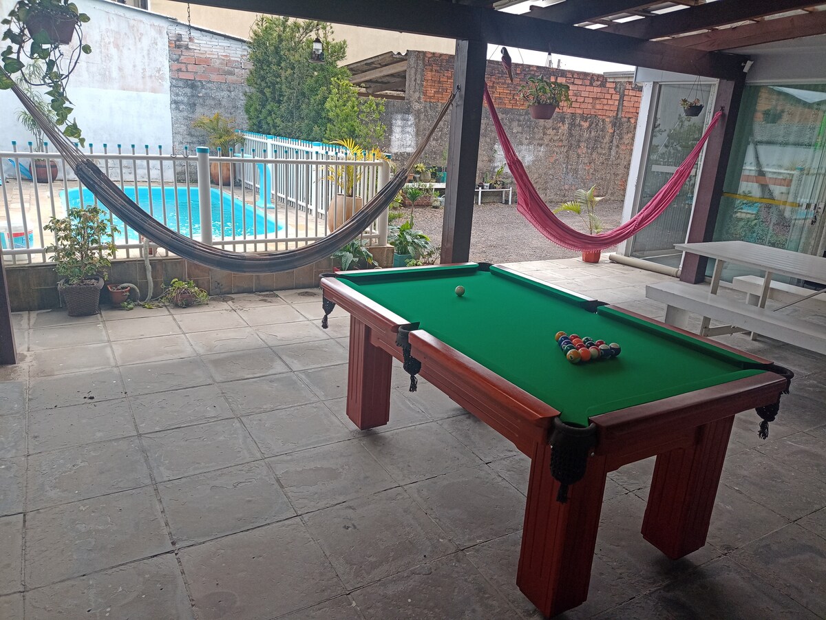 Great house in the center of Xangri-Lá, with 3 bedrooms, with 1 suite, all with air conditioning, social bath, bathroom, large living room, balcony, outdoor living environment, kitchen, barbecue, swimming pool with lighting, waterfall and hydromassage, pool table measuring 2.20 x 1.00, parking in a fenced area, electronic gate and Wi-Fi. v blízkosti trhů, lékáren, pekáren a nonstop zdravotního centra.