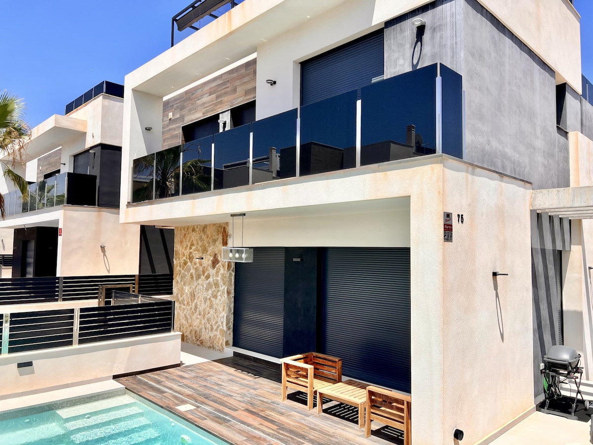 Vila snů pro dovolenou snů. Ostrov míru na kontinentu pobřeží Costa Blanca ve Španělsku. 5 ložnic, 4 koupelny, otevřená kuchyně a prostorný obývací pokoj s dveřmi vedoucími k soukromému bazénu. Dále je zde suterén s další ložnicí a také druhý obývací pokoj s Tv, pracovním prostorem a prádelnou. Třešnička na dortu? Střešní terasa s jacuzzi, kde můžete odpočívat, relaxovat, trávit čas s rodinou a přáteli a užívat si nádherný výhled.