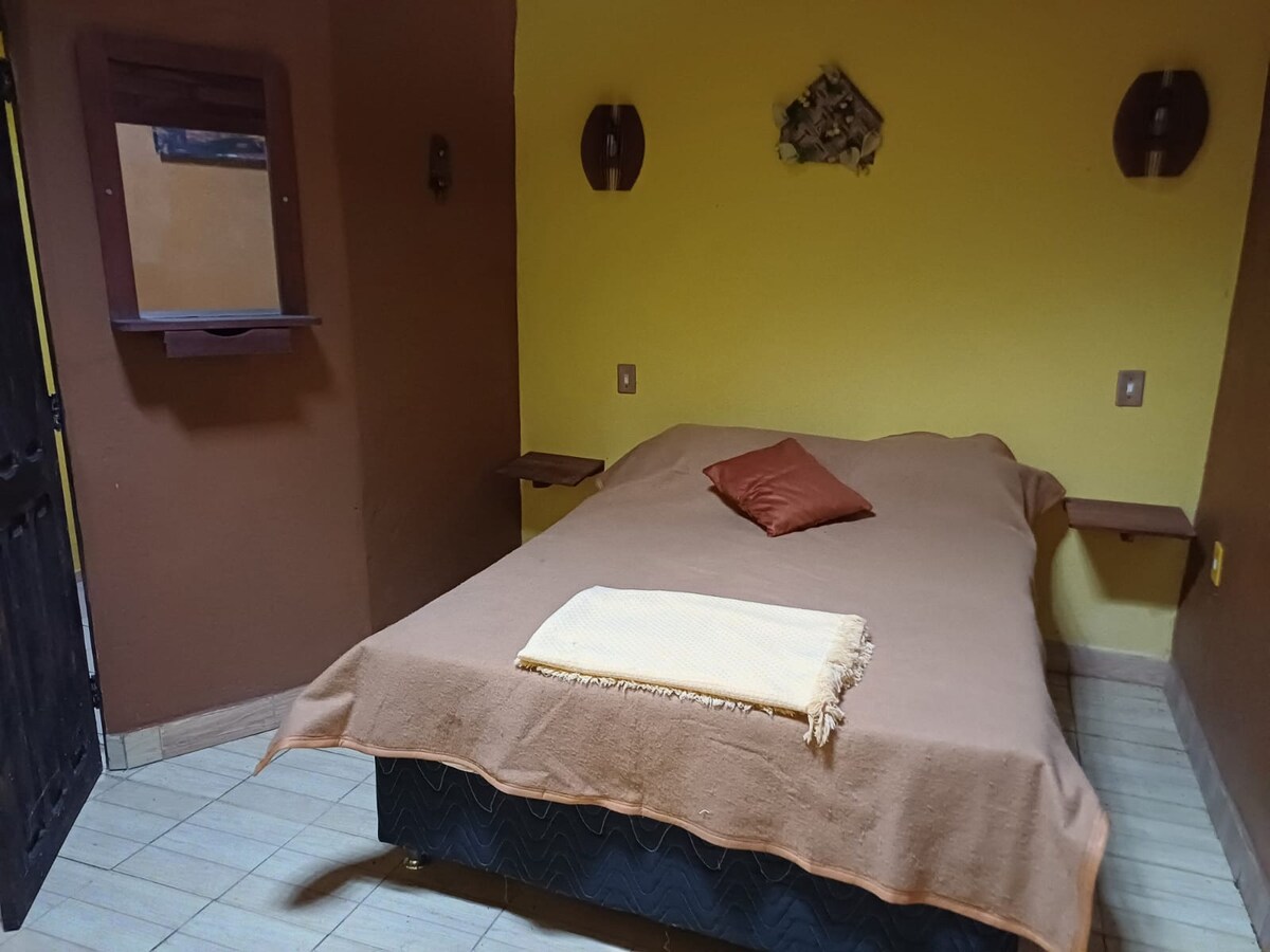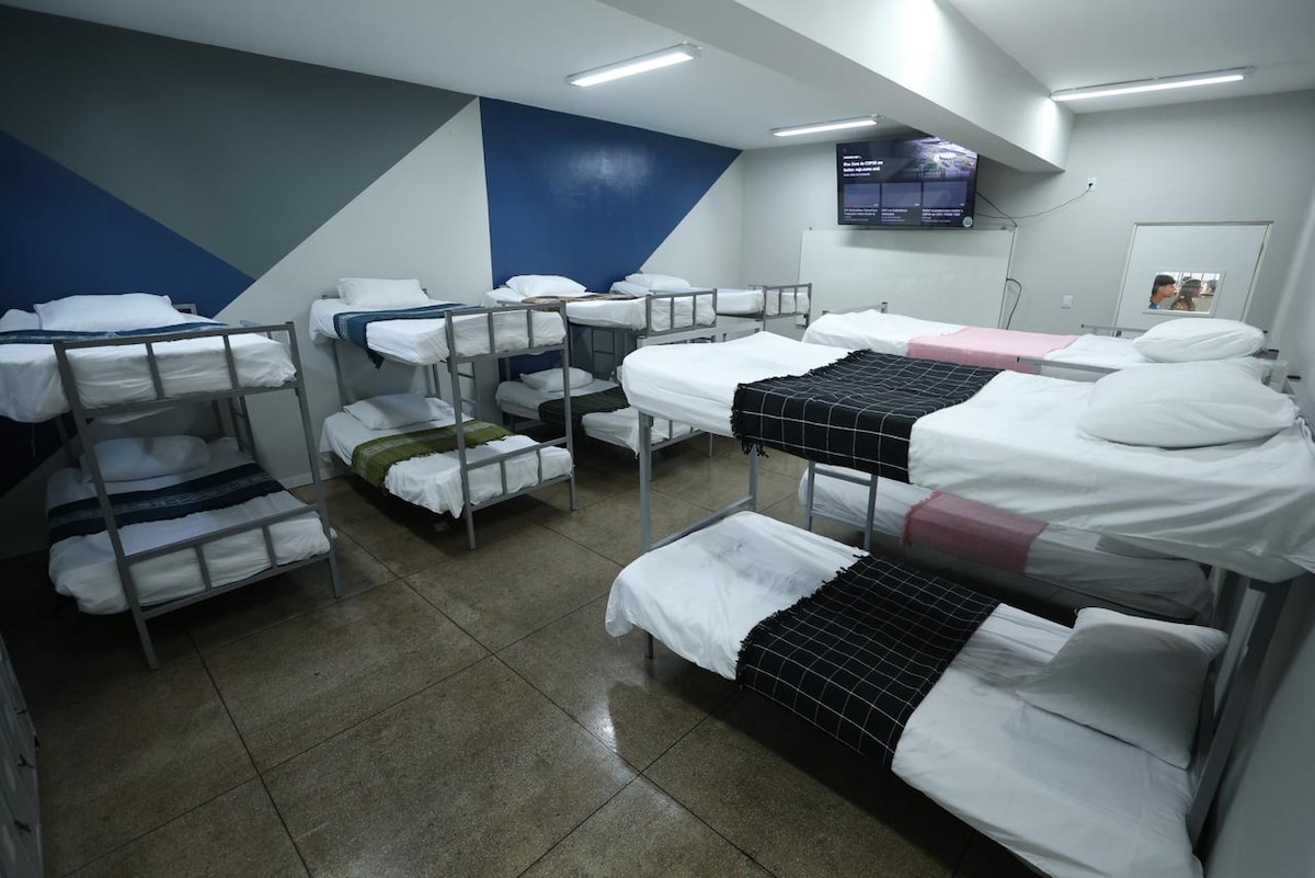 O quarto possui uma cama de casal, wifi, ar condicionado e frigobar. Conta com banheiro privativo com ducha de água quente e fria. É uma acomodação simples, mas aconchegante, com móveis de boa qualidade e tudo o que o hóspede precisa para uma estadia confortável. A recepção dispõe de uma área compartilhada para refeições, equipada com micro-ondas, máquina de snacks e bebidas e uma máquina de café, oferecendo praticidade ao hóspede.