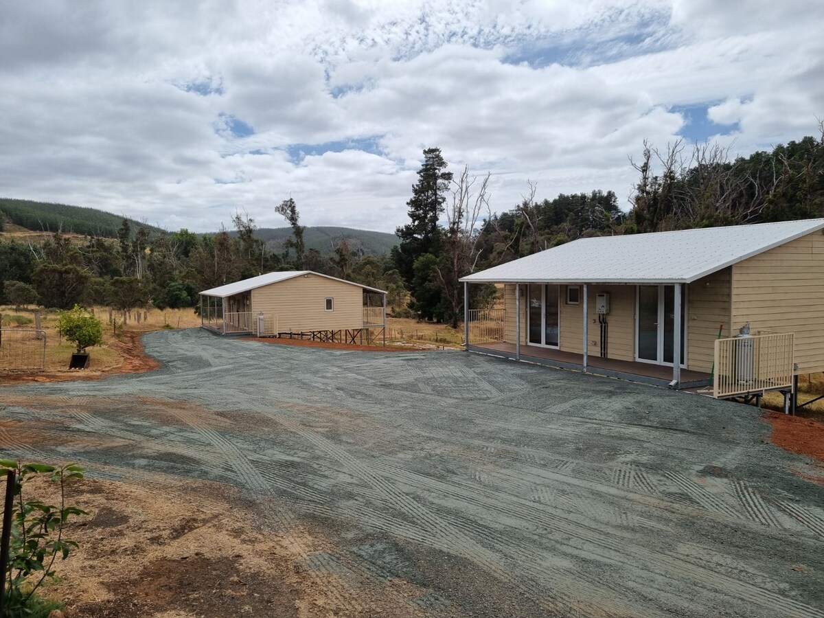 Ubytování na farmě zasazené v malebném údolí podél řeky Blackwood. 790 hektarů bujných kopců, jedinečných bušů a divoké zvěře. Místo k odpočinku, relaxaci a sledování pastvy dobytka obklopující chatu Cleves. Vaše vlastní malé útočiště uprostřed přírody. 100% mimo síť a ručně vyrobené z recyklovaného dřeva z farmy. Zpomalte a zažijte jednoduchý život na venkově. Sledujte nás na @cleves_hut