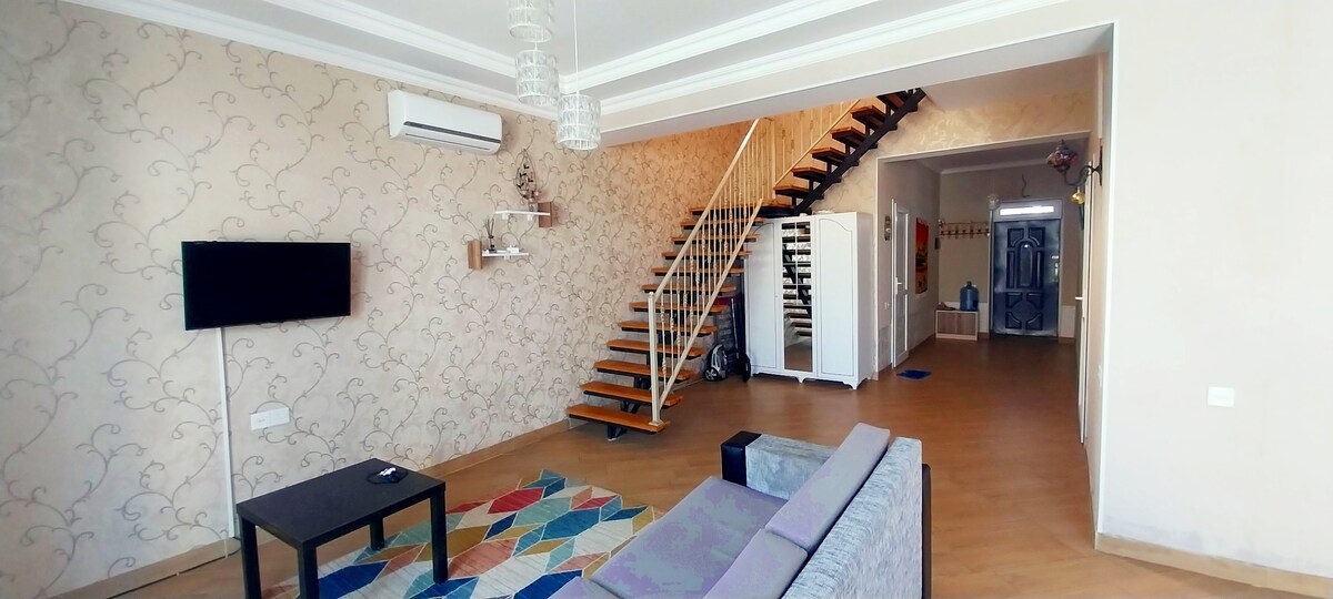 Dobij si energii v tomto novém a stylovém domově. Útulný a čistý soukromý dům, 1 km od pobřeží Kaspického moře. Tichá relaxace na nádvoří s otevřenou letní kuchyní, vedle které je gril. Čistota, hygienické normy a útulnost na vysoké úrovni. Jsou zde všechny podmínky pro dlouhé i krátké dovolené. Nádobí všeho druhu, venkovské nářadí, gril, špízy a hygienické výrobky. V okolí je veškerá nezbytná infrastruktura, trhy, restaurace. Pláž je poblíž