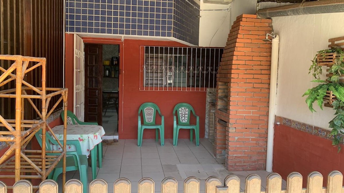 Perto de supermercados, farmácia em rua tranquila de fácil acesso à praia . Casa simples c jardim, garagem pra 2 carros . Para até 6a8 pessoas pelos 6 dias virada de ano R$ 6000