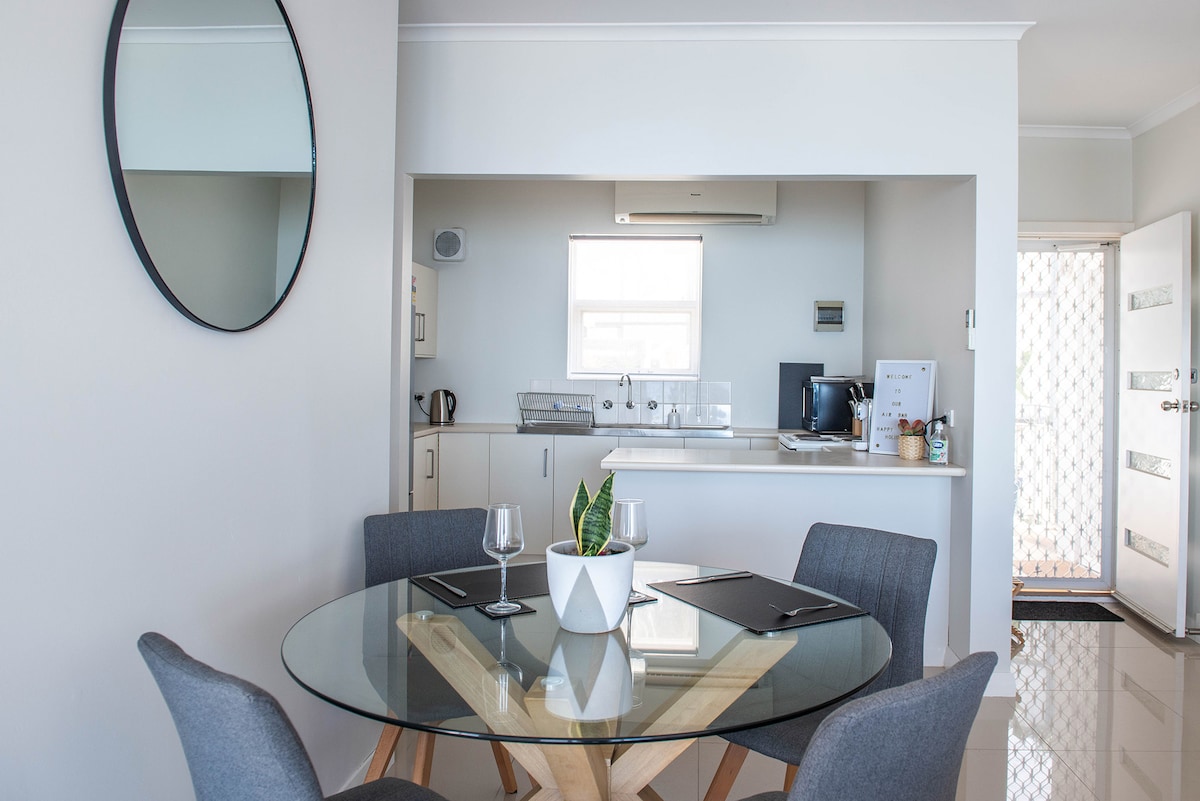 Dopřejte si pohodlí a odpočiňte si v našem moderním a stylovém penzionu. Nachází se v Hallett Cove a je vzdálen jen pár kroků od malebných výhledů na oceán z vrcholu útesu a nechvalně známé promenády Marino Esplanade až po pobřežní promenádu Hallett Cove s nově postavenými visutými mosty vedle nemovitosti. 15 minut autem nebo vlakem do nemocnice a univerzity Flinders a méně než půl hodiny do slavných vinařství McLaren Vale a Adelaide CBD, toto útočiště je ideálním místem pro váš pobyt, ať už za prací nebo za zábavou.