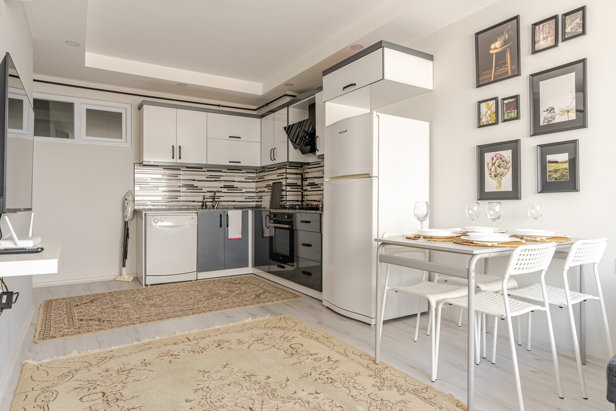 Tento byt je v srdci Antalye. Je v přízemí budovy, která má samostatný vchod. Byt je ve stylu studia (1+0), které je vhodné pro pár a jednu osobu. Máte veškeré základní vybavení pro život. Máte neomezené připojení k Wi-Fi a kabelovou televizi. Teplá voda je k dispozici 24 hodin denně. Můžete použít kávovar, můžete si uvařit jídlo, můžete si nechat jídlo v lednici. Máte také malou zahradu s brankou. Budete mít pocit, že žijete ve vlastním domě.