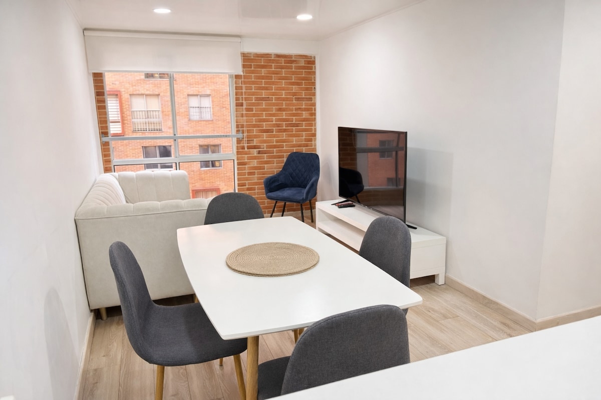 Nově zařízený apartmán se terasou, inteligentní zámek pro větší bezpečnost, 24hodinová ostraha, televize s platformami a kanály pro streamování, Wi-Fi; Nachází se v Chapineru, strategické oblasti v Bogotě, kde najdete nákupní centra, nejlepší restaurace a bary ve městě Doporučení: Při rezervaci budete požádáni o fotografii dokladu totožnosti, abyste mohli vstoupit do budovy, jak to vyžaduje správa.