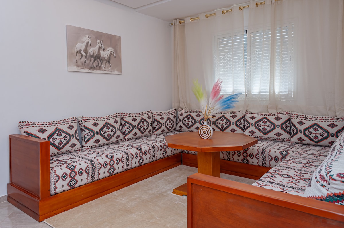 Un appart tout confort - Résidence neuve avec ascenseur et accès sécurisé - Appart fonctionnel, moderne et joliment décoré - Clim, Wi-Fi, TV ... pour un séjour agréable 🏊♂️ Les atouts de votre séjour - Piscine en rooftop avec vue dégagée, idéale pour vous détendre après vos journées de visite - Quartier central et animé, parfait pour découvrir Marrakech - A proximité immédiate des commerces, et lieux de vie 📌 À savoir Nous respectons la législation marocaine (voir règlement intérieur).