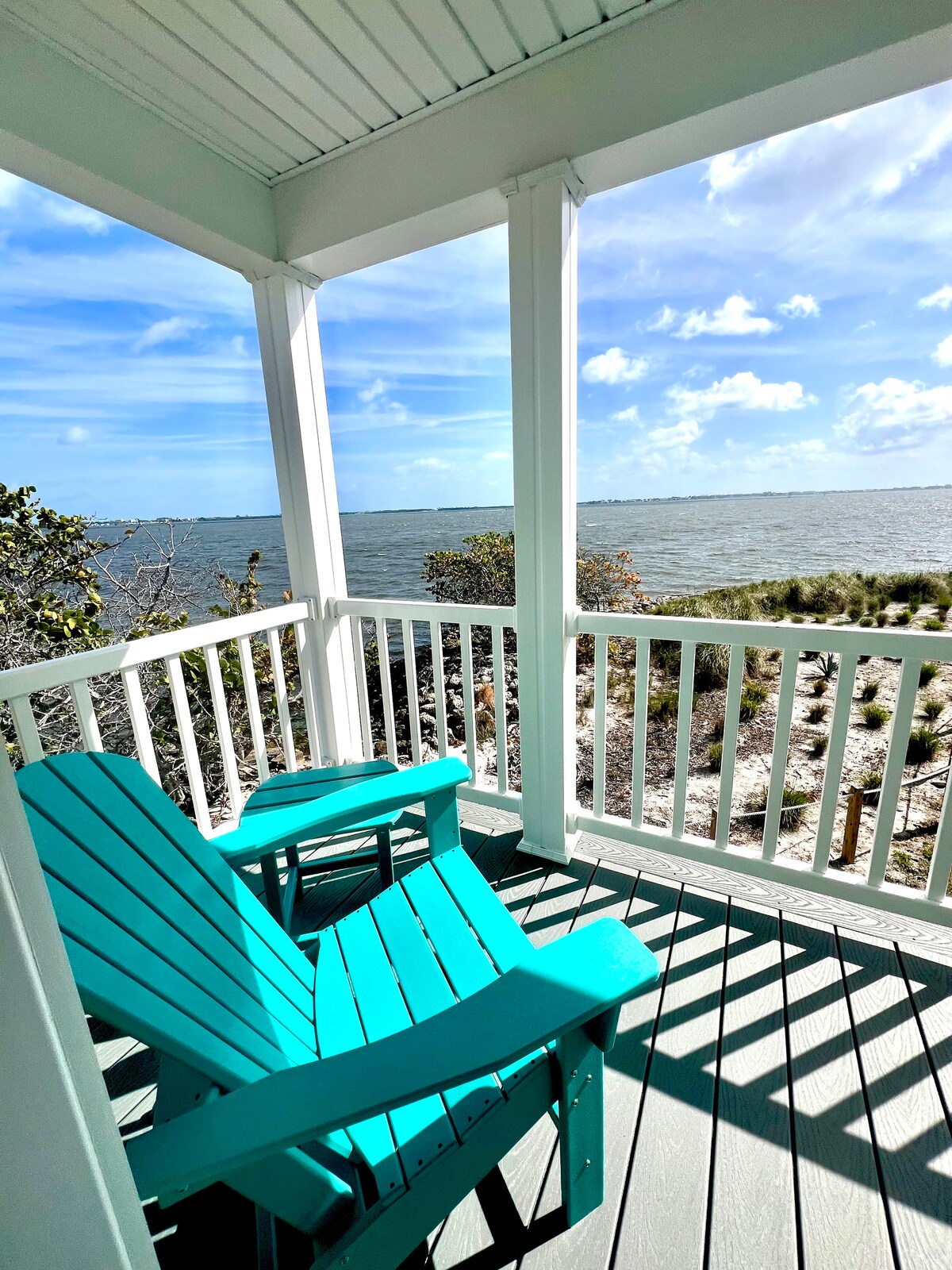 Designed for top views in the community, this waterfront two-bedroom retreat overlooks both the river and the resort-style pool. Two thoughtfully appointed outdoor living spaces—a main deck just off the living room and a private Sky Deck above—offer an elevated coastal experience from morning through sunset. Beautifully designed, impeccably maintained, and fully equipped with a king bed, queen bed, and sofa sleeper, this home delivers a comfortable stay with everything guests need and love.