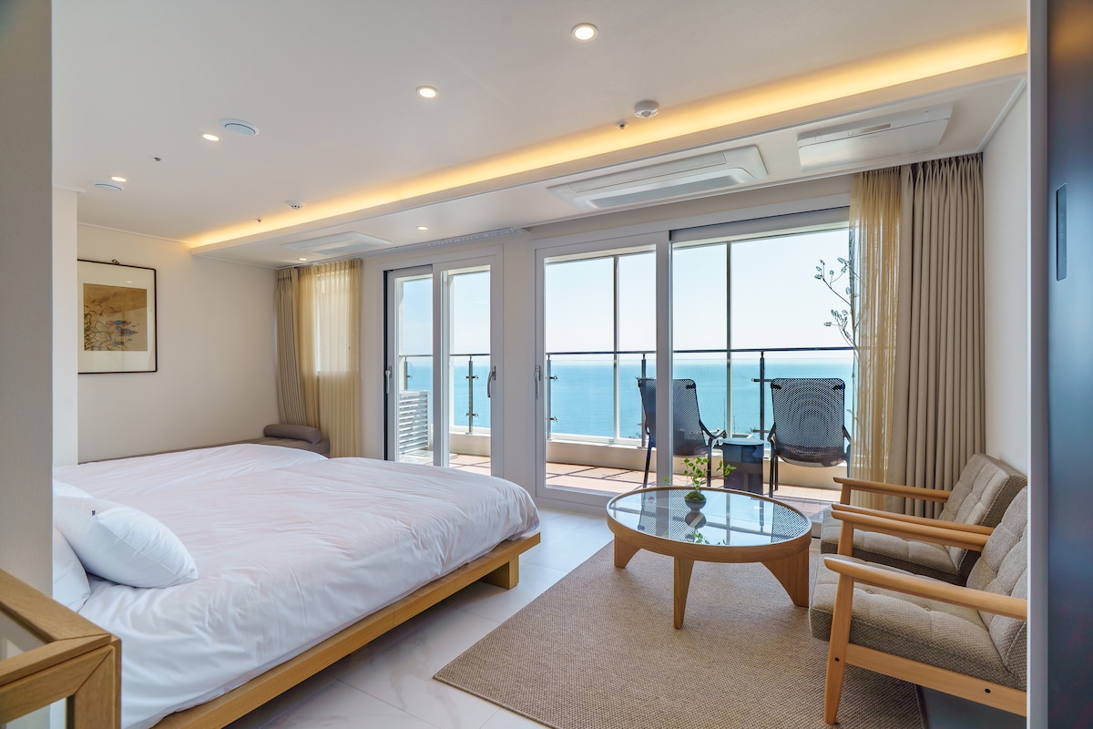 Výhled na oceán s nejlepší krásou v Koreji!!! Můžete si užít východ i západ slunce ve stejnou dobu, čistý vzduch, zvuk vln narážejících na skály, moře zářící v měsíčním světle, plovoucí lodě v noci. Také si můžete užít lázně ve vaně připomínající bazénovou vilu a interiér z materiálů hotelové kvality. 본 숙소는 미스터멘션 특례를 적용받아 내국인 공유숙박 합법 업체로 등록되어 운영되고 있습니다