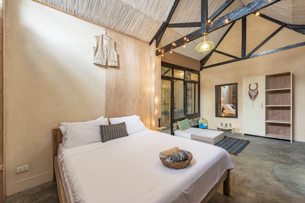 This second story luxury apartment overlooks Burgos Bays premier surf breaks .Equipped with your own private bathroom ,kitchen,king size bed ,air conditioner ,smart TV ,sound bar extra beach towels and star link internet. Enjoy FREE EXPRESSO on the shared 3rd floor rooftop its nothing short of spectacular. You can relax in the loft net ,do yoga or workout ,or just chill and watch the fisherman ,surfers and beach goers do there thing . Villa Prana is instergramable and bespoke by design.
