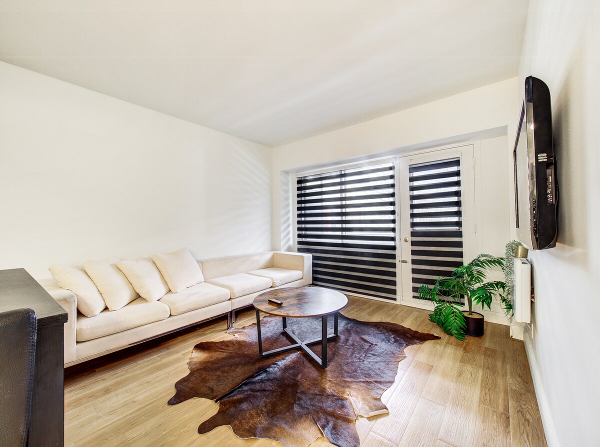 Enjoy a stylish experience at this centrally located place. Brand-new ultra-modern 1-bedroom apartment Relax in the private bedroom or use of the office area, which transforms into a cozy twin-size bed. The apartment also features a fully equipped kitchen, spacious living area, and modern design perfect for both work and leisure. Steps away from restaurants, shopping, and nightlife, you’ll have the city at your doorstep. Ideal for solo travelers, couples, small families, or business guests