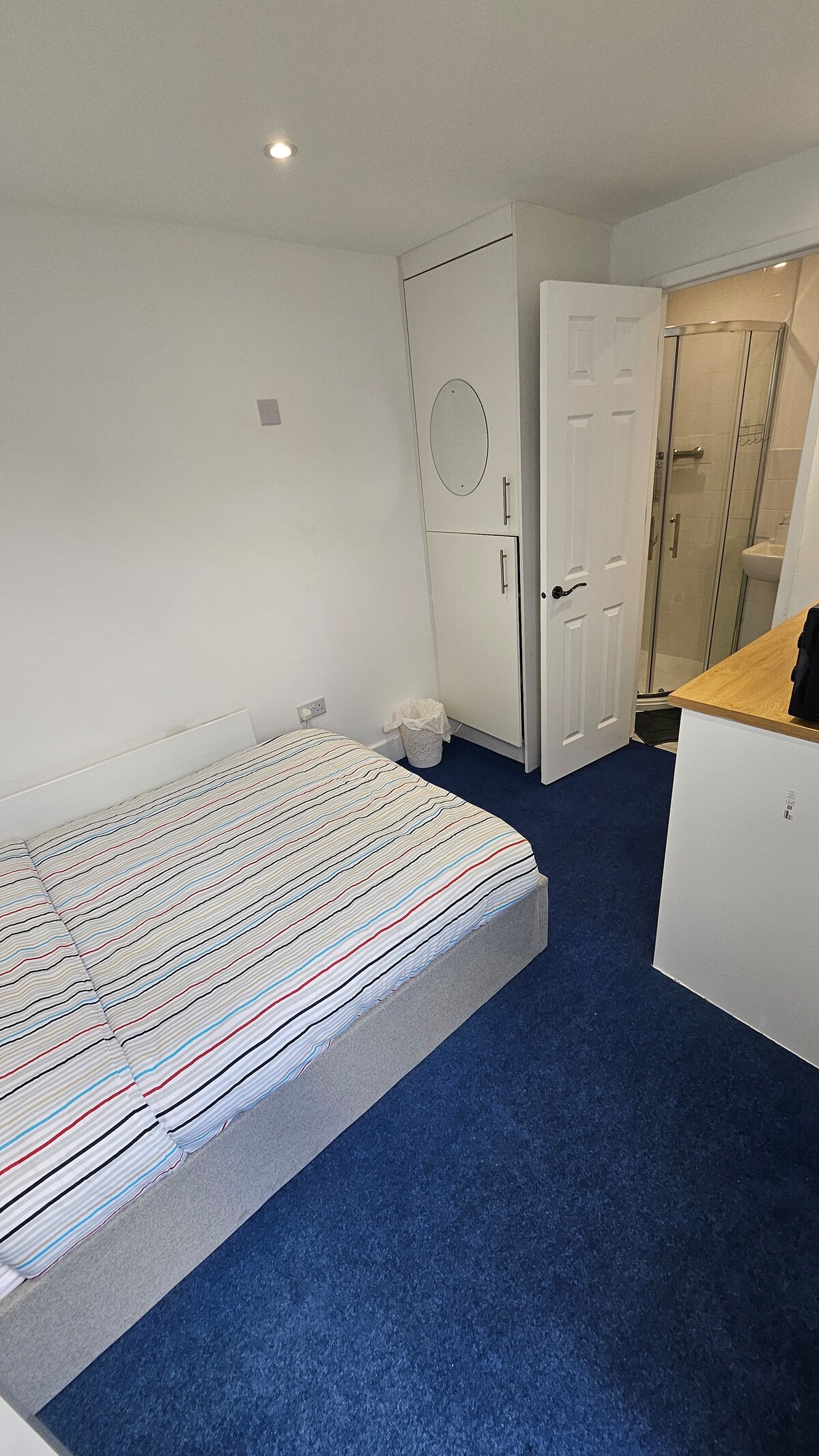Luxury high-end private room within a beautifully finished property, designed for professionals seeking comfort and style. Features a plush hotel-quality bed, premium furnishings, smart TV, and fast WiFi. Guests have access to a sleek, fully equipped communal kitchen with modern appliances and dining space. Quiet, clean, and professionally maintained, offering an elevated living experience ideal for extended stays.