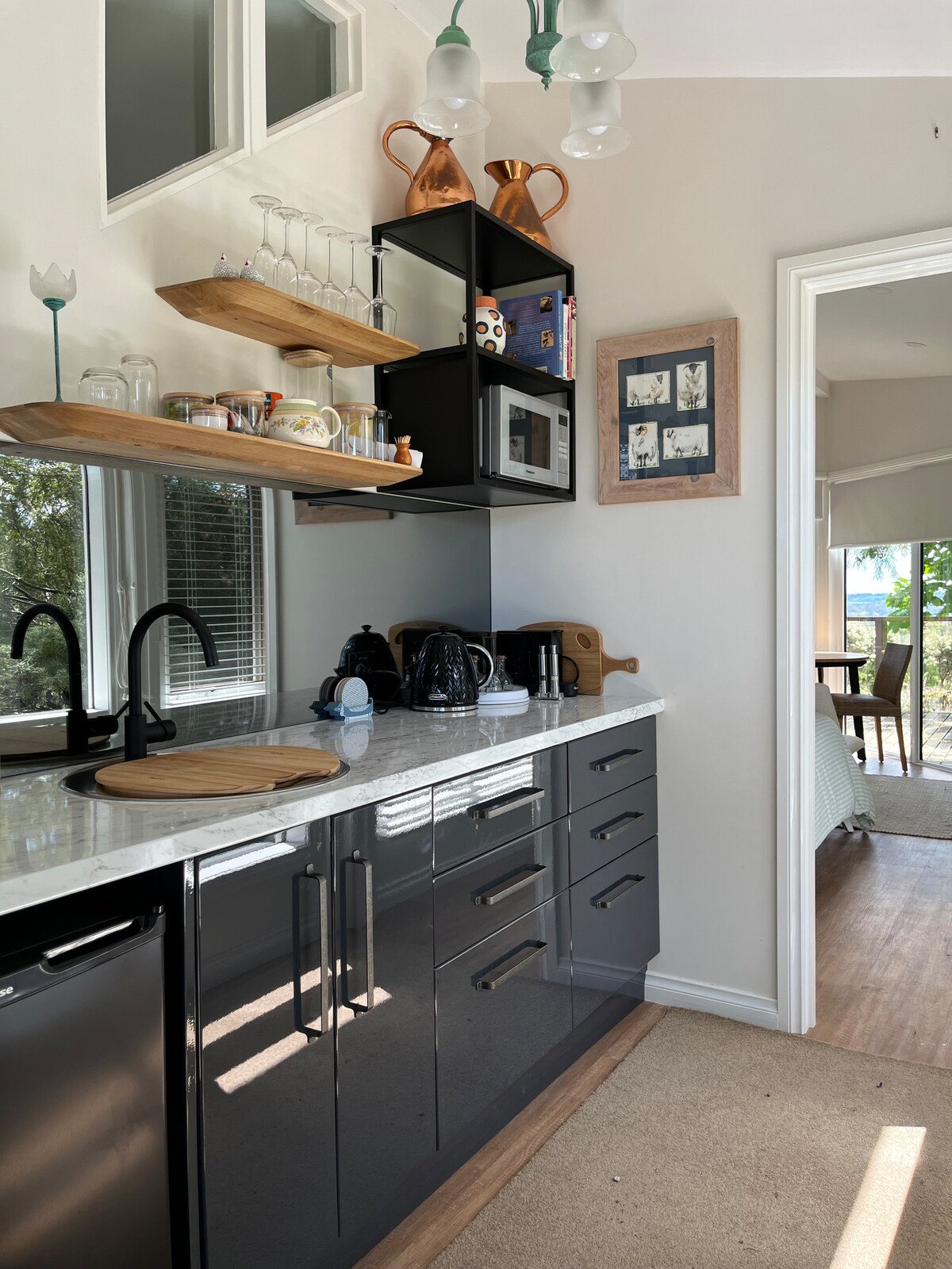 „Krásné výhledy, ohromující poloha, skvělá kvalita a moderní rustikální výzdoba“ – L.2025 Vítáme vás v tomto romantickém butikovém ubytování pro 2 osoby s úžasným 180stupňovým výhledem na zvlněné kopce až k Fish Creek a za něj z každého okna. Prostorné a samostatné ubytování se slunečným moderním pohodlným uměleckým interiérem. V blízkosti Wilsonova výběžku, Fish Creek, Foster, Waratah Bay, vinařství a pláží. Ideální základna pro objevování Jižního Gippslandu.