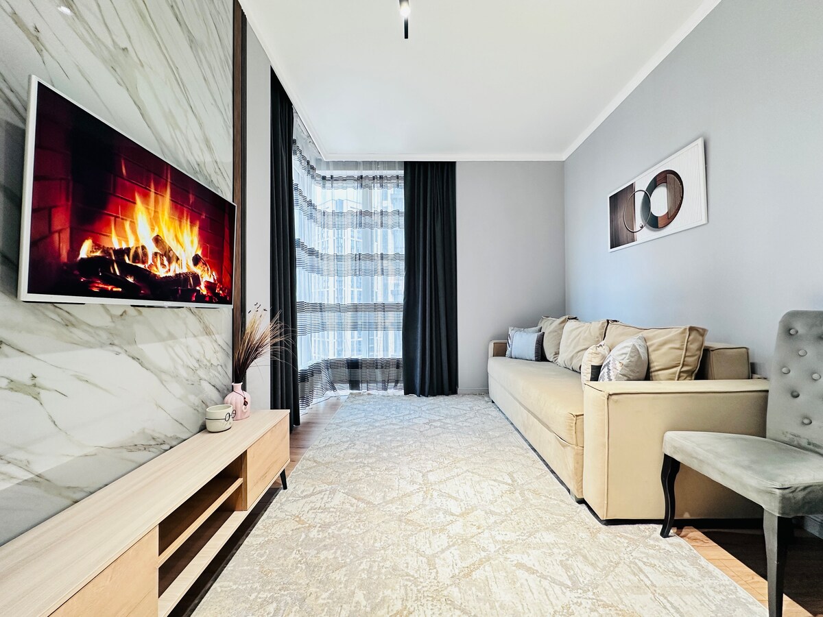 Stylový, prostorný dvoupokojový byt o rozloze 55 m ². Designová renovace. Vše je promyšleno do nejmenšího detailu. Krásná ložnice s velkou postelí, pohovkou s konferenčním stolkem a elegantním výhledem na hory. Obývací pokoj s velkou rozkládací pohovkou a chytrou televizí. Kuchyně se vším, co potřebuješ. Vysokorychlostní internet. Dvě izolované koupelny a sprcha. Bezklíčový přístup. Nonstop ostraha. Útulný klidný dvůr. Nachází se v nejmodernější části města. Nejbližší nákupní centrum je do 2 minut chůze.