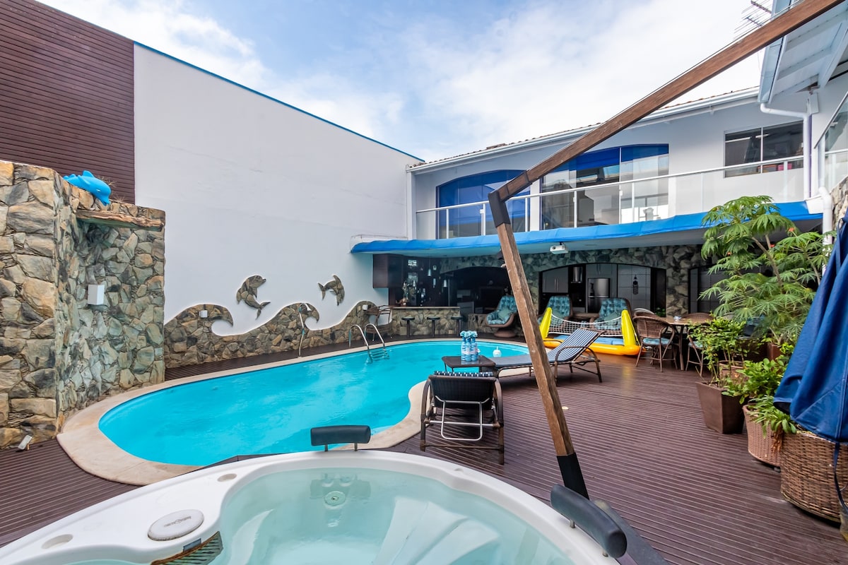 Užij si naše moderní studio v centru Itapema/SC! Plně klimatizované studio vybavené TV a Wi-Fi se nachází v budově Manhattan Flats Building, která nabízí střešní bazén, posilovnu s výhledem, hernu, bowling a saunu. Pro více volného času si rezervuj grily, oba za poplatek. Jen 280 metrů od Central Beach a v blízkosti vynikajících restaurací. Rezervuj nyní a zažij nezapomenutelné chvíle na pobřeží!