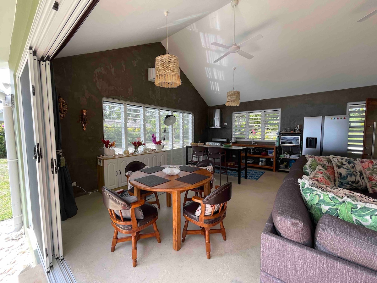 Toto je tvá tropicky navržená vila na chráněné pláži South Pacific Island, která je vzdálena 30 minut jízdy od mezinárodního letiště a více dalších oceánských zátok a pláží. Vila má krásné syrové dřevo, vápencové stěny, místní umění, výběr ručně vyrobeného a starožitného nábytku, plně otevřenou kuchyň a jídelnu, širokou houpací síť přátelskou terasu s zarámovaným výhledem na Tichý oceán, vnitřní i venkovní sprchy a svěží zahrady.