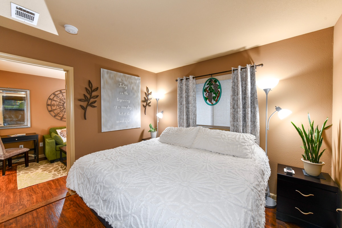 Bright Queen Room | Free Parking- Walk to Wineries