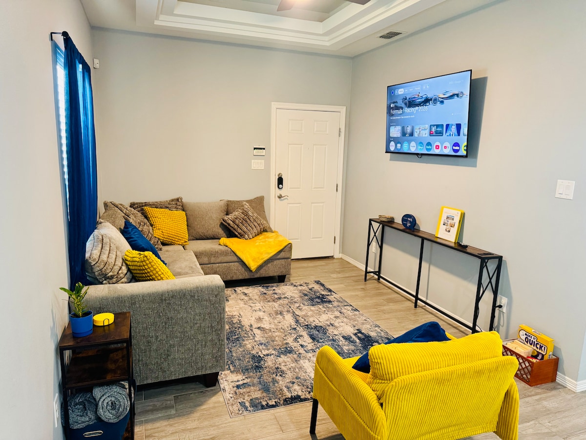*OPRAVDU SE OSVĚŽTE v tomto novějším ubytování se 2 ložnicemi, 2 koupelnami (pro 6 osob) v klidné nové čtvrti. Otevřené uspořádání, vysoké stropy, nové spotřebiče, nový nábytek a W/D. Plně vybavená kuchyně s křemennými pulty. Vychutnejte si venkovní posezení/grilování na soukromém dvorku. *Tento duplex je 6 minut od outletů! Centrální poloha se snadným přístupem do Harlingenu, South Padre Island, Brownsville a McAllen pro nákupy/stravování, pláž a zábavu. Ideální pro všechny cestovatele nebo zimní ptáky. Slevy na měsíční pobyty! DIČ 25623