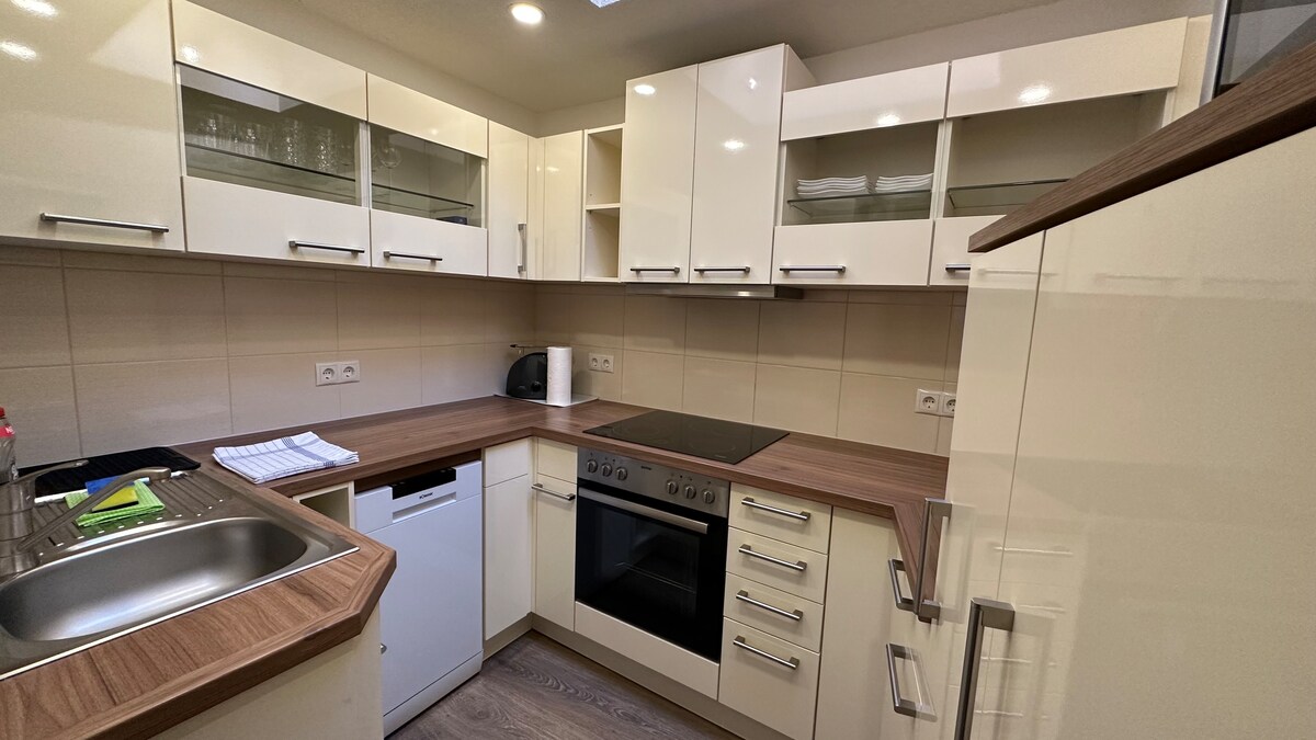 🌿 Moderne, Großzügige & ruhige Ferienwohnung. Stilvoll eingerichtet mit Platz für bis zu 5 Gäste – ideal zum Entspannen, für Familien oder Geschäftsreisende. 🛏️ Separates Schlafzimmer + großes Wohnzimmer mit Schlafmöglichkeiten 🔥 Kamin für gemütliche Abende 🍳 Voll ausgestattete Küche 🚿 Bad mit Dusche & Badewanne 🚗 Kostenloser Parkplatz auf dem Grundstück Ruhige Lage mit guter Anbindung – perfekt für Ausflüge in die Umgebung. 👉 Tipps für Ausflüge findest du in meinem Guidebook.