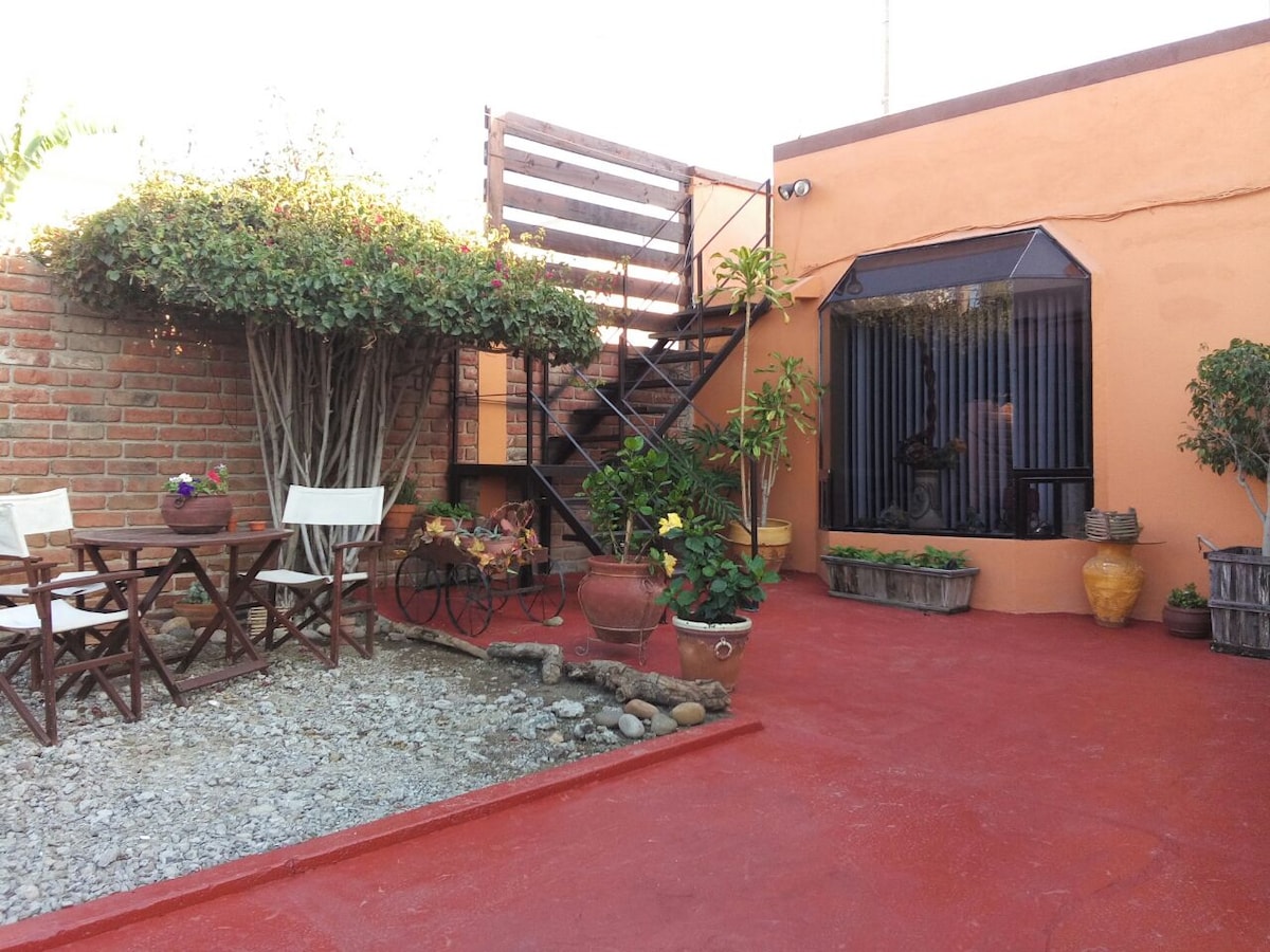 Živý byt v srdci nejzajímavější čtvrti Tijuany! Užij si útulnou ložnici s manželskou postelí a prémiovým ložním prádlem spolu s koupelnou s toaletou, která je po ruce. Obývací pokoj je vybaven chytrou televizí a plně vybavená kuchyně zahrnuje jídelní stůl, který je ideální pro příjemné jídlo.