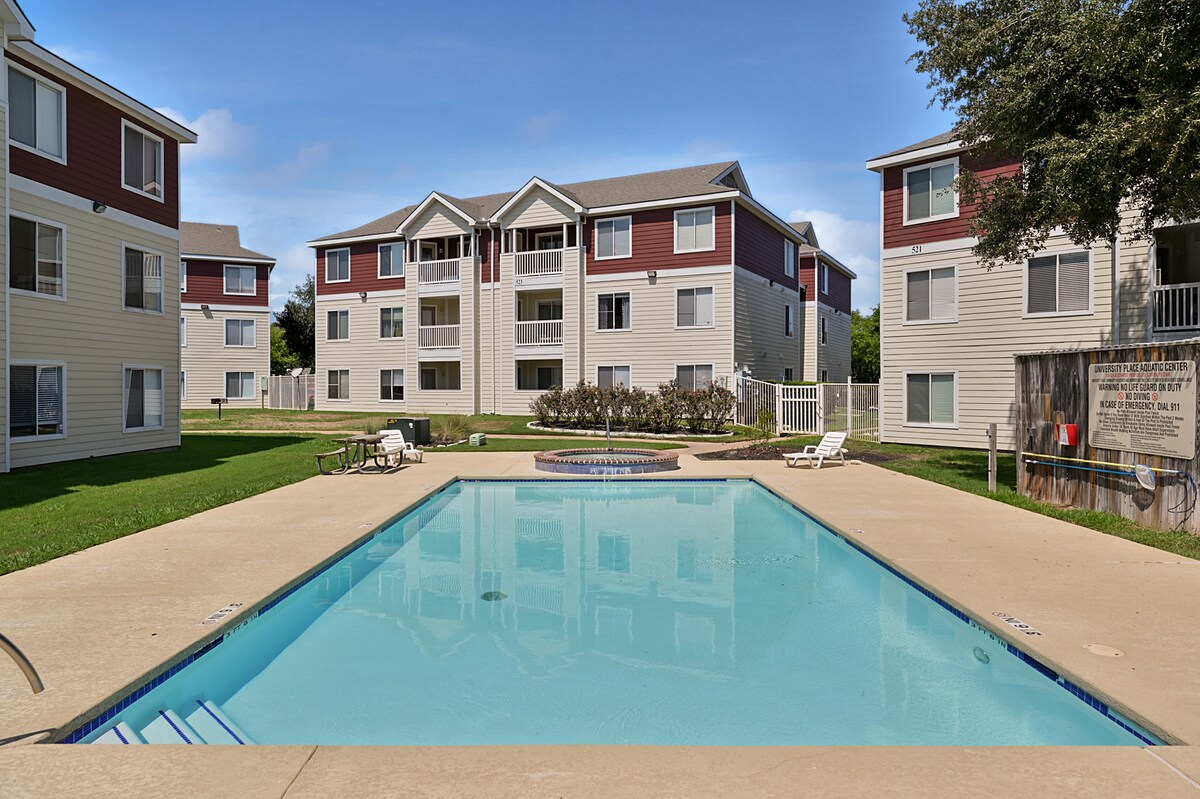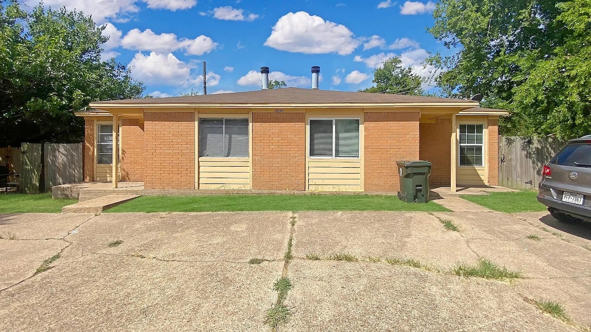 Centrální poloha hned u dálnice 6, 11 minut do kampusu A&M, 6 minut do Blinnu. Projděte se do Starbucks, Cracker Barrel Restaurant, TruFit Gym, nakupování a další! Extrémně pohodlná manželská postel v každé ze dvou ložnic, soukromý oplocený dvorek, bleskově rychlá wifi a vše, co potřebuješ pro dlouhodobý pobyt (nebo rychlý). Budete mít: ✔ BBQ ✔Venkovní stolování ✔kávu ✔Čaj ✔65" TV (filmy na Amazon Prime, Roku, Fire & Local OTA Live TV) ✔Wifi ✔ Parkování ✔POHODLNÉ manželské postele