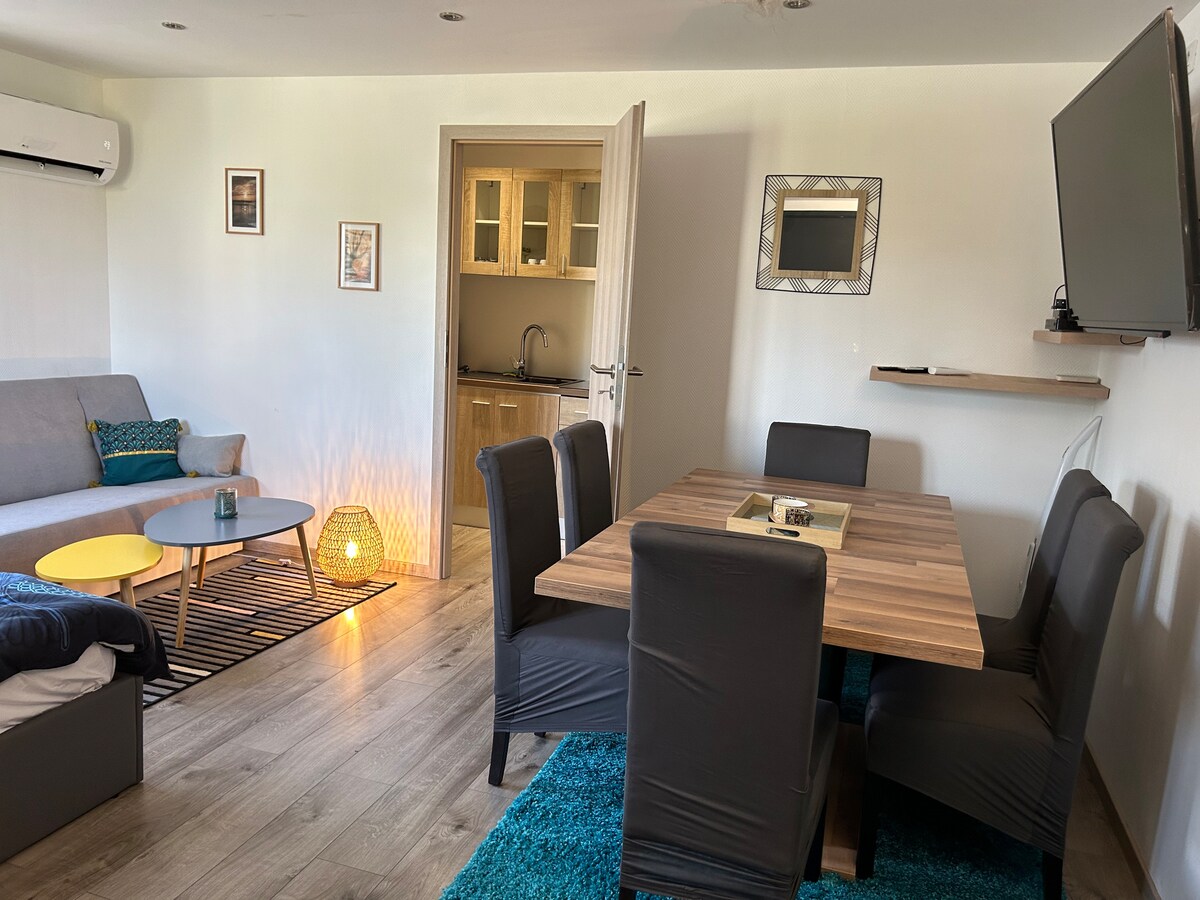 Ať už jste zde za prací nebo za zábavou, užijte si toto prostorné ubytování. 4 minuty od SARREBOURGU V BLÍZKOSTI CENTER PARC, PARC DE SAINTE CROIX, PLAN INCLINÉ - 6 osob: 1 lůžko 160 x 200, 1 lůžko 140 x 200, 1 rozkládací pohovka 140 x 200 - KOJENCI a DĚTI: 1 dětská postýlka, vysoká židle - LOŽNÍ PRÁDLO + RUČNÍKY a PRAČKA v ubytovacích zařízeních - WIFI, HD TV, NETFLIX - Trouba, mikrovlnná trouba, toustovač, varná konvice, kávovar SENSEO K dispozici jsou kapsle s kávou, čajem, cukr PARKOVÁNÍ ZDARMA