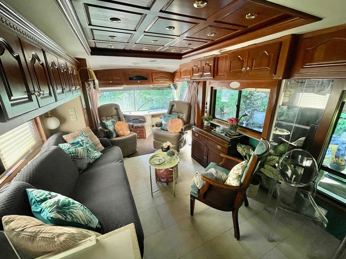 Nepřekonatelné, nepozoruhodné kempování na příjezdové cestě. Starý obytný vůz, nadzemní bazén, malá vířivka. Přijeďte být okrajově ohromeni naším obytným vozem třídy A, který je vybaven tolika pohodlím, na kolik jsme si vzpomněli. Centrální klimatizace vás ochladí, zatímco si budete užívat nevýrazné výhledy. Bazén je jen pár kroků daleko a naproti naší garáži, kde jsem si jistý, že můj partner pracuje na něčem hloupém. Autobus o rozloze 420 čtverečních stop, soukromá stíněná terasa a společný zábavní prostor s hrami a stínem.