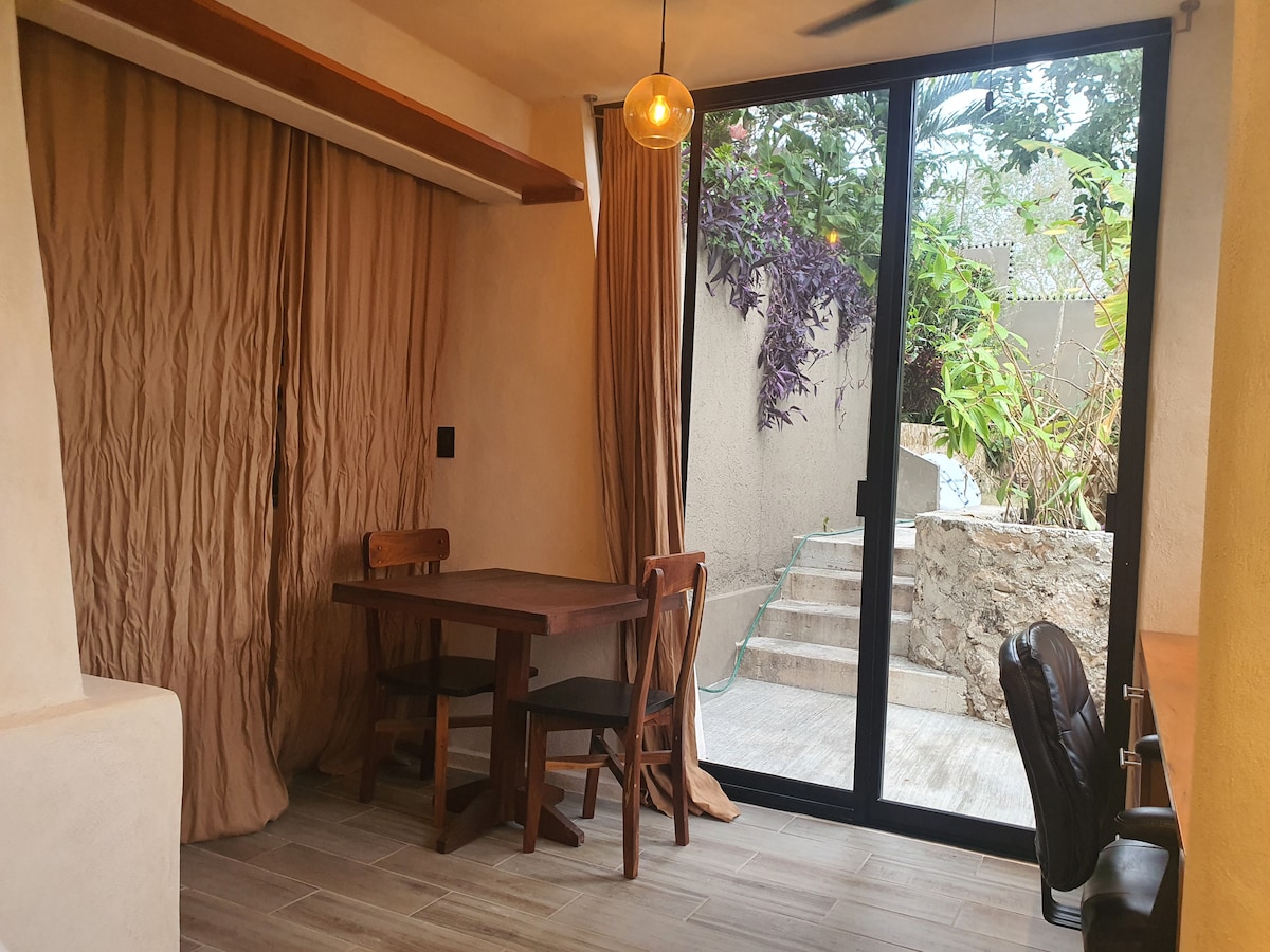 Byt v přízemí s 2 ložnicemi a 2 koupelnami v Casa Emilia, inspirovaný jukátanskými haciendami. Promyšlený design, hřejivé textury a klidné světlo rámují útulný domov se soukromým dvorkem a malým bazénem, kde si můžeš odpočinout. Jedna minuta od Calle 7, nejživějšího místa v okolí po plážové zóně a oblíbeného místa místních a cizinců, kde se nají, vypijí kávu a užijí si večer. Nabízí dokonalou rovnováhu mezi energií a klidem, je nový, příjemný a stvořený pro pomalé dny v Tulumu.