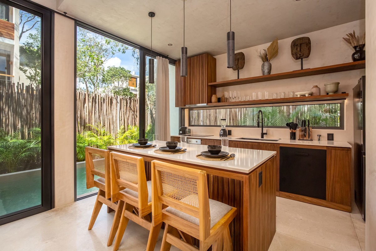 En Casa Kuro, la arquitectura japonesa dialoga con la selva maya en un refugio de contemplación. Creación de Namus, desarrollador publicado en las más importantes revistas de arquitectura global como Architectural Digest, ArchDaily, Design Boom y en el libro "Lo Mejor de la Arquitectura Mexicana del Siglo XI", además de múltiples premios internacionales. Este PH de 3 niveles es un templo para los amantes del arte: dos recámaras, alberca privada, tina, regadera al aire libre y vistas a la jungla.