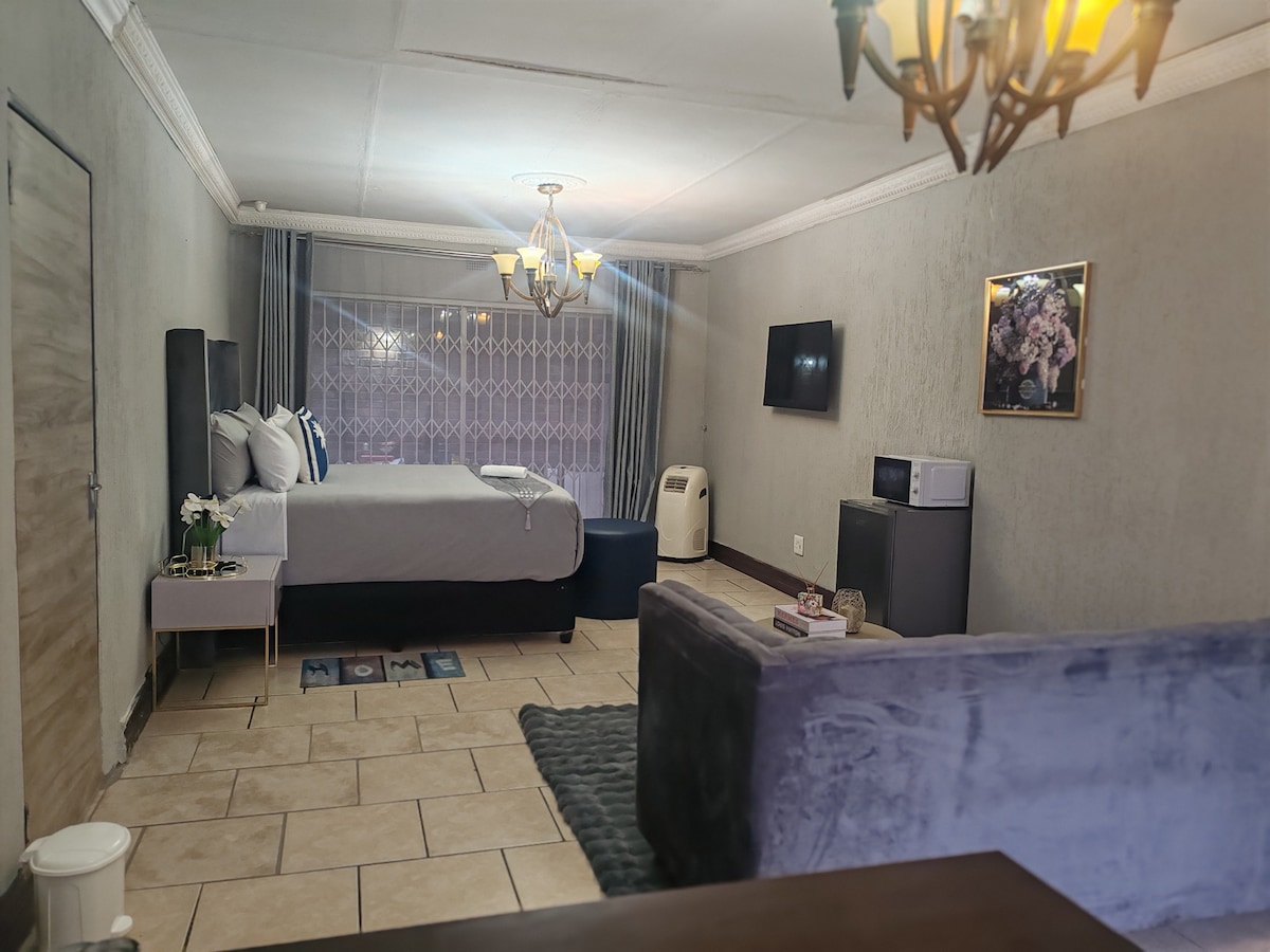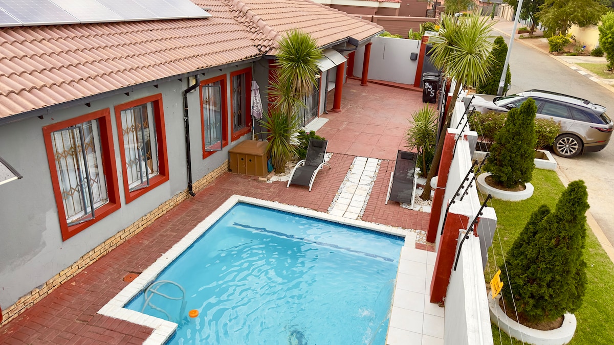 Užij si luxusní dům s 5 ložnicemi, bezplatnou Wi-Fi, bazénem a grilovacím prostorem, který se nachází v prestižní čtvrti Alveda Park v Johannesburgu. Toto stylové sídlo nabízí pohodlí a komfort jako žádné jiné a nachází se hned vedle rušného Gold Reef City, Soweta, Mandela House, Joburg CBD a Sandton City. Dopřej si exkluzivní vybavení, které nabízí nemovitost a její okolí, osvěž se v bazénu, vyzvi přátele na mistrovské braai nebo si odpočiň na chladné kryté terase.