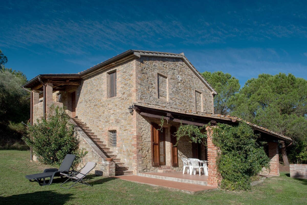 Dům se může pochlubit vzácným a okouzlujícím výhledem na Val d'Orcia a Monte Amiata, což zajišťuje maximální soukromí. Interiéry odrážejí kouzlo toskánského stylu, se starožitným nábytkem a povrchovými úpravami od místních řemeslníků. Je vybaven dvojlůžkovou ložnicí, prostorným obývacím pokojem s velkým stolem, plně vybaveným kuchyňským koutem a rozkládací pohovkou pro dvě osoby před krbem v obývacím pokoji. Venku vám terasa umožní jíst s barvami západu slunce jako pozadí.