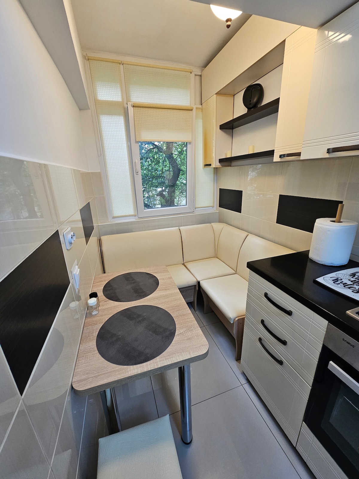 Byt se nachází v klidné oblasti,plně vybavený a zařízený. V obývacím pokoji je pohovka a ložní prádlo, které lze použít jako postel na spaní. Klademe velký důraz na detaily, takže chceme, aby se naši hosté cítili jako doma.