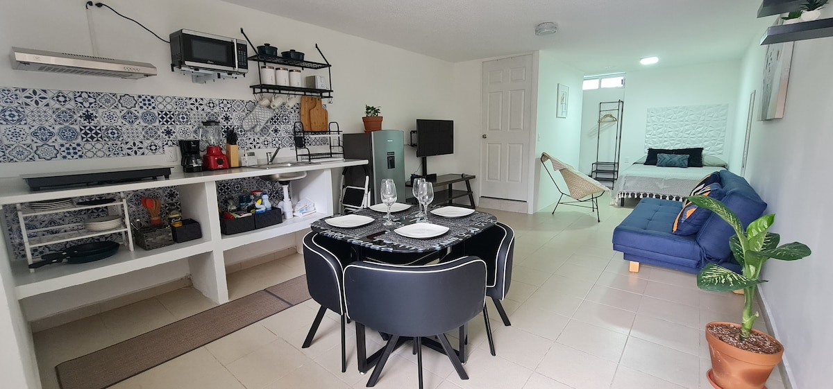Loft Golondrina WiFi + vybavení + exkluzivní služby. V krásném prostředí na jihu CDMX najdete velký soukromý a nezávislý prostor s designem a pohodlím pro naše návštěvníky, užijte si klidnou oblast a vybavení, které pro vás máme. V blízkosti škol, nemocnic, bank, nákupních center a zajímavých míst.