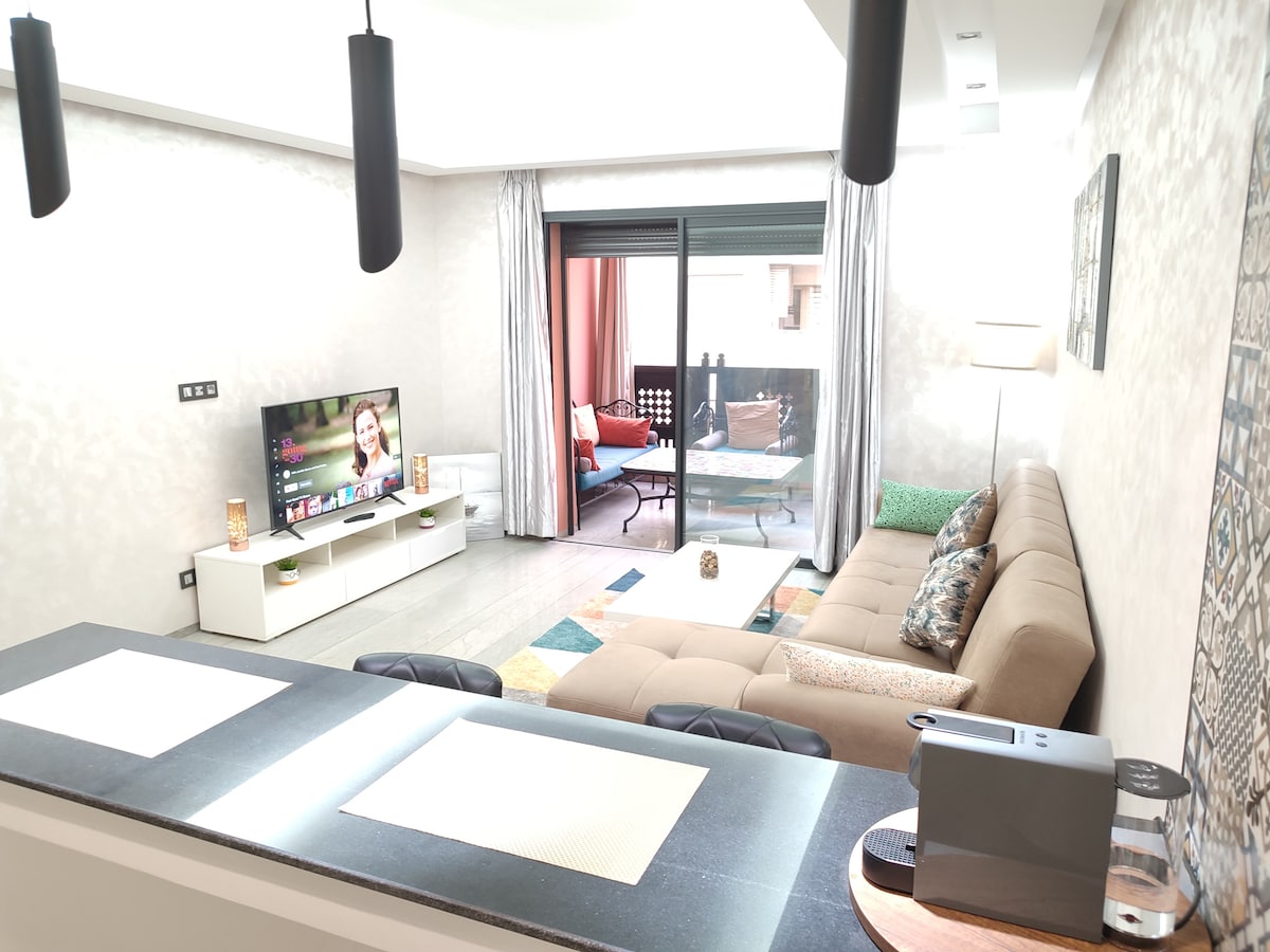 Objevte elegantní a stylový apartmán v samém srdci okrového města Marrákeše, pečlivě navržený pro nezapomenutelný pobyt. Díky dvěma uklidňujícím ložnicím, útulnému obývacímu pokoji a plně vybavené kuchyni nabízí tento prostor veškeré pohodlí, které potřebujete k odpočinku a užívání si města. Ideální pro jedinečný zážitek, který kombinuje marocké kouzlo a modernost, tento apartmán je připraven učinit váš pobyt v Marrákeši nezapomenutelným.