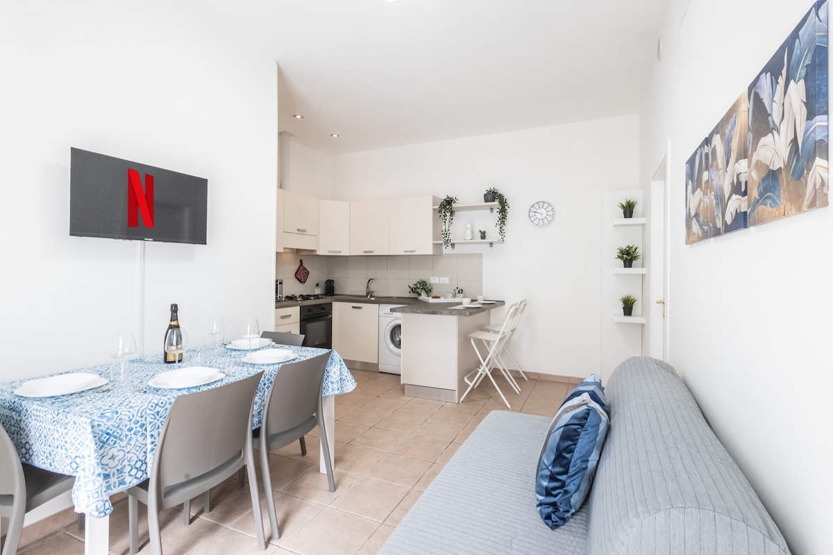 Appartamento finito di ristrutturare giugno 2021, a 150 metri dal mare. Dotato di tutti i comfort e servizi (aria condizionata, riscaldamento, wifi, lavanderia, phon, TV, forno , forno a micro-onde, lavastoviglie, 1 bagno dotato di doccia e 1 di servizio). Piccola corte esterna ad uso esclusivo. Nel raggio di 200 metri sono presenti tutti i servizi utili: supermercati, ristoranti, bar, panifici, fruttivendolo. calzolaio e altro ancora. Posto auto privato a 100 metri.